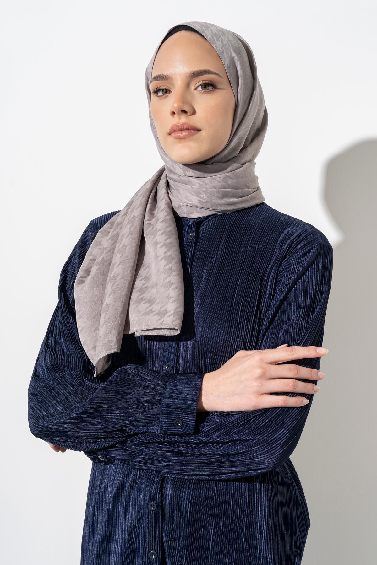 Kadın Tesettür Jakarlı Küçük Desen Kazayağı Şal GRİ