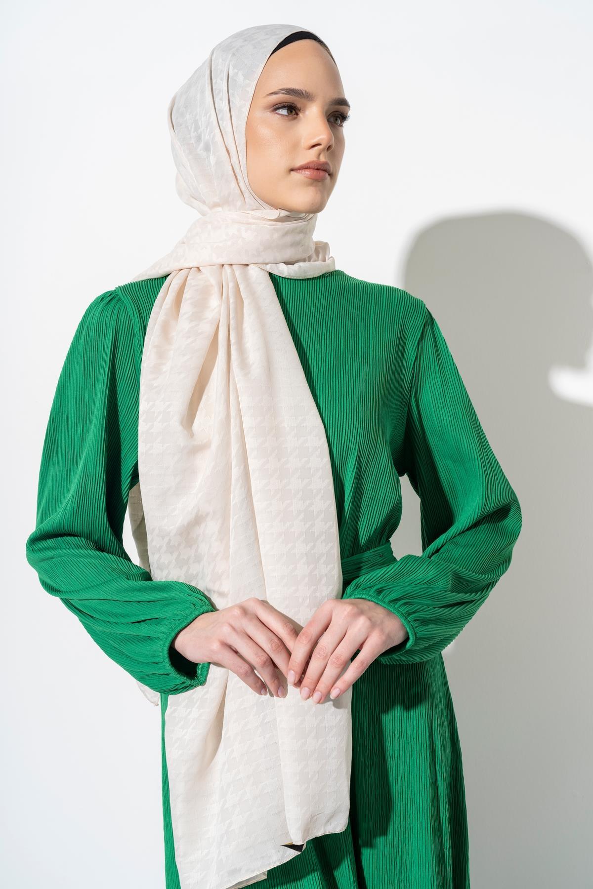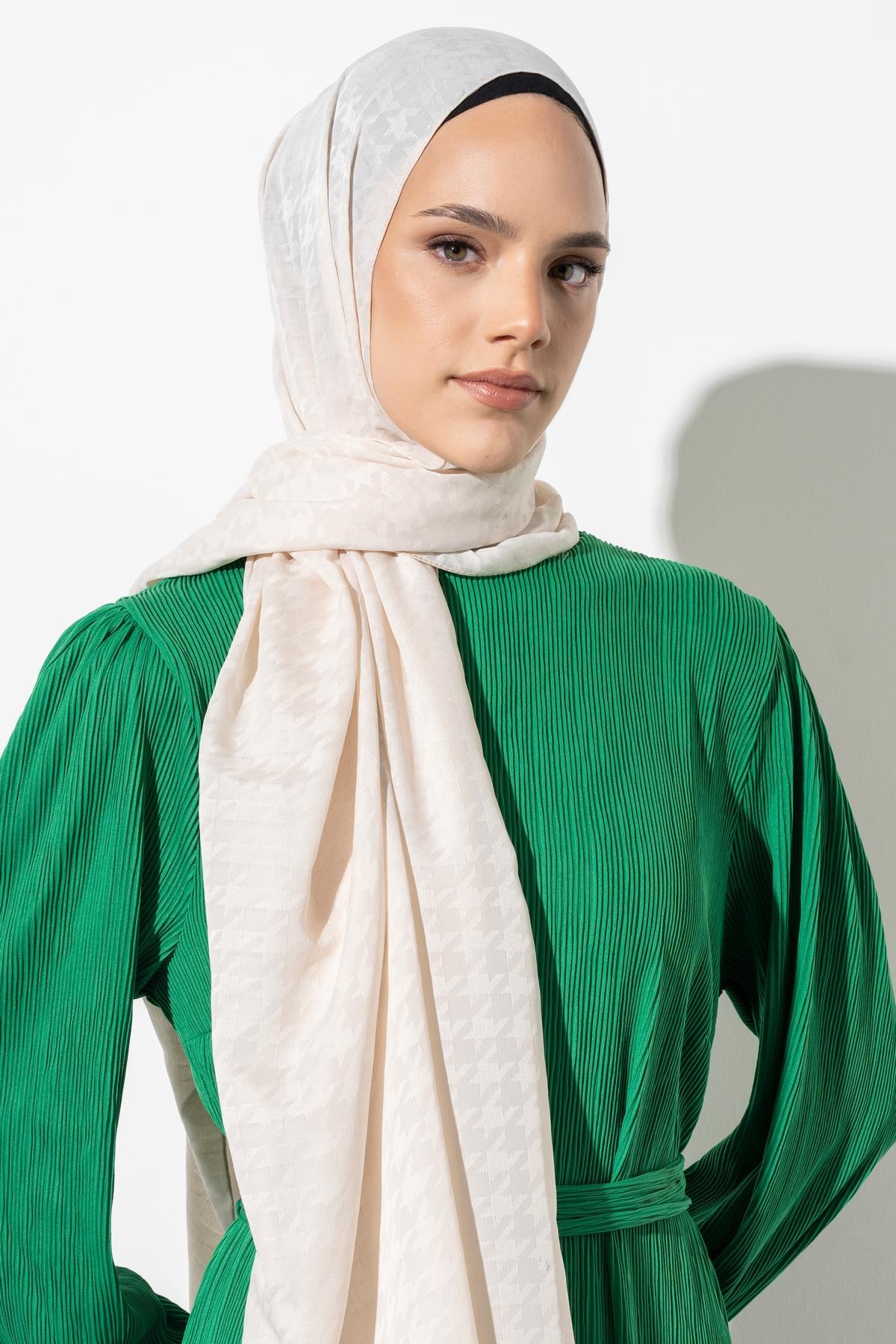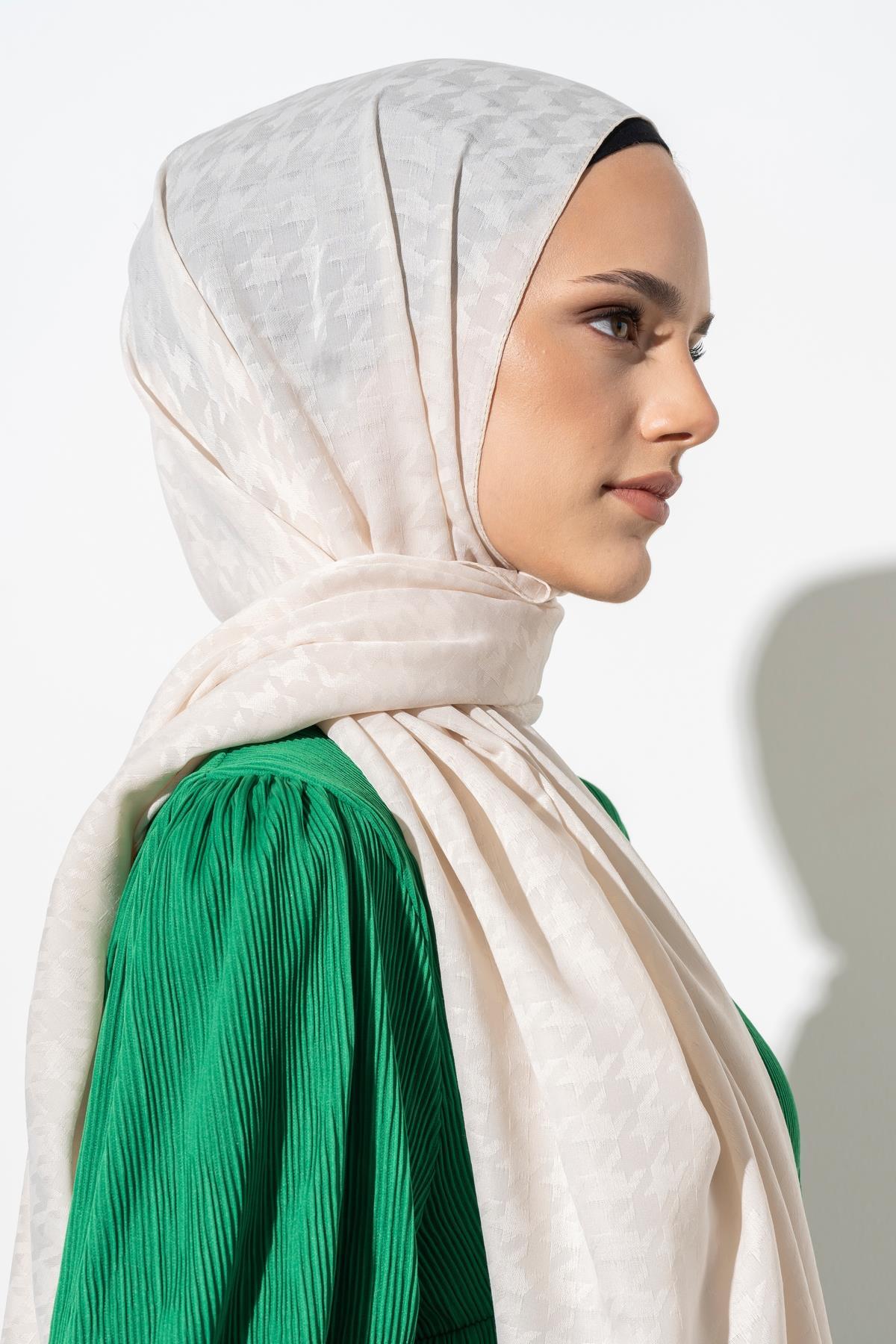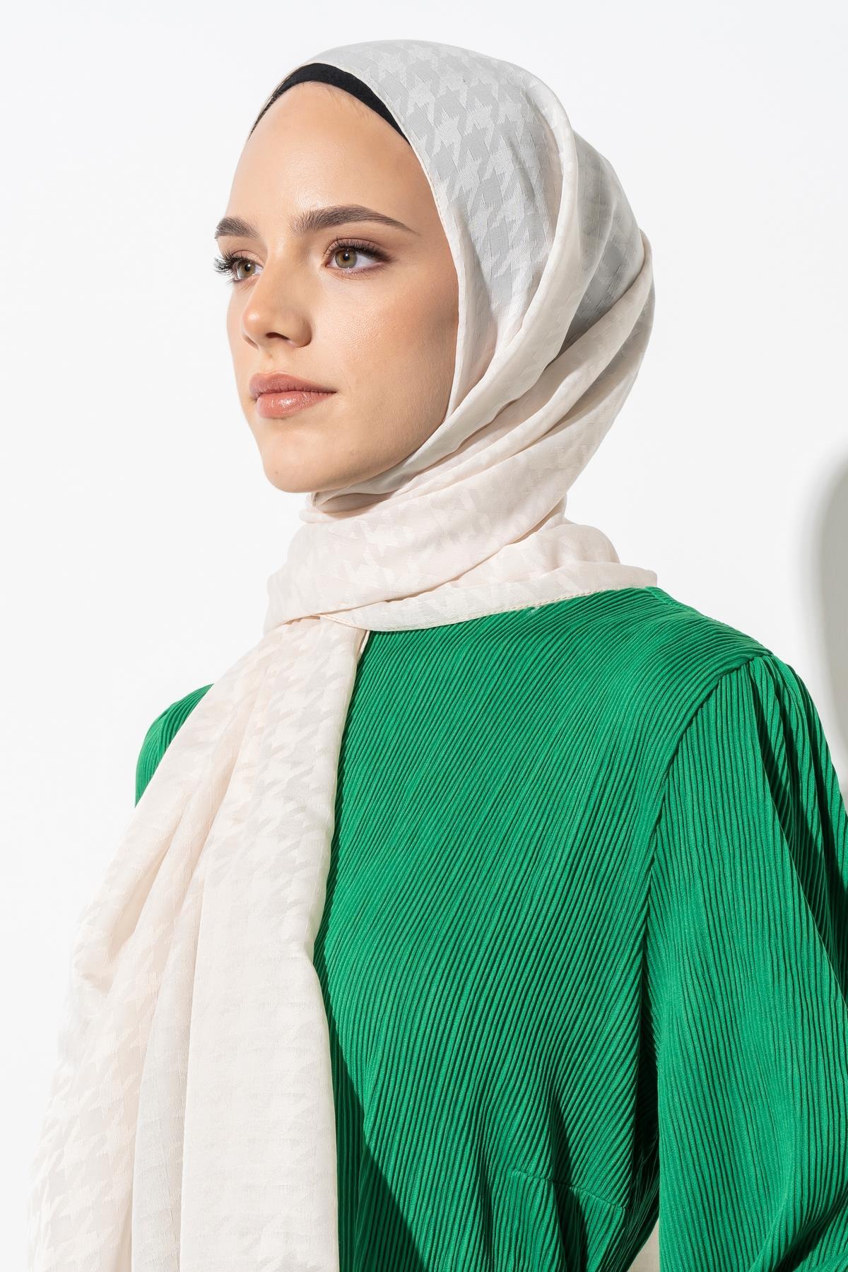 Kadın Tesettür Jakarlı Küçük Desen Kazayağı Şal KREM