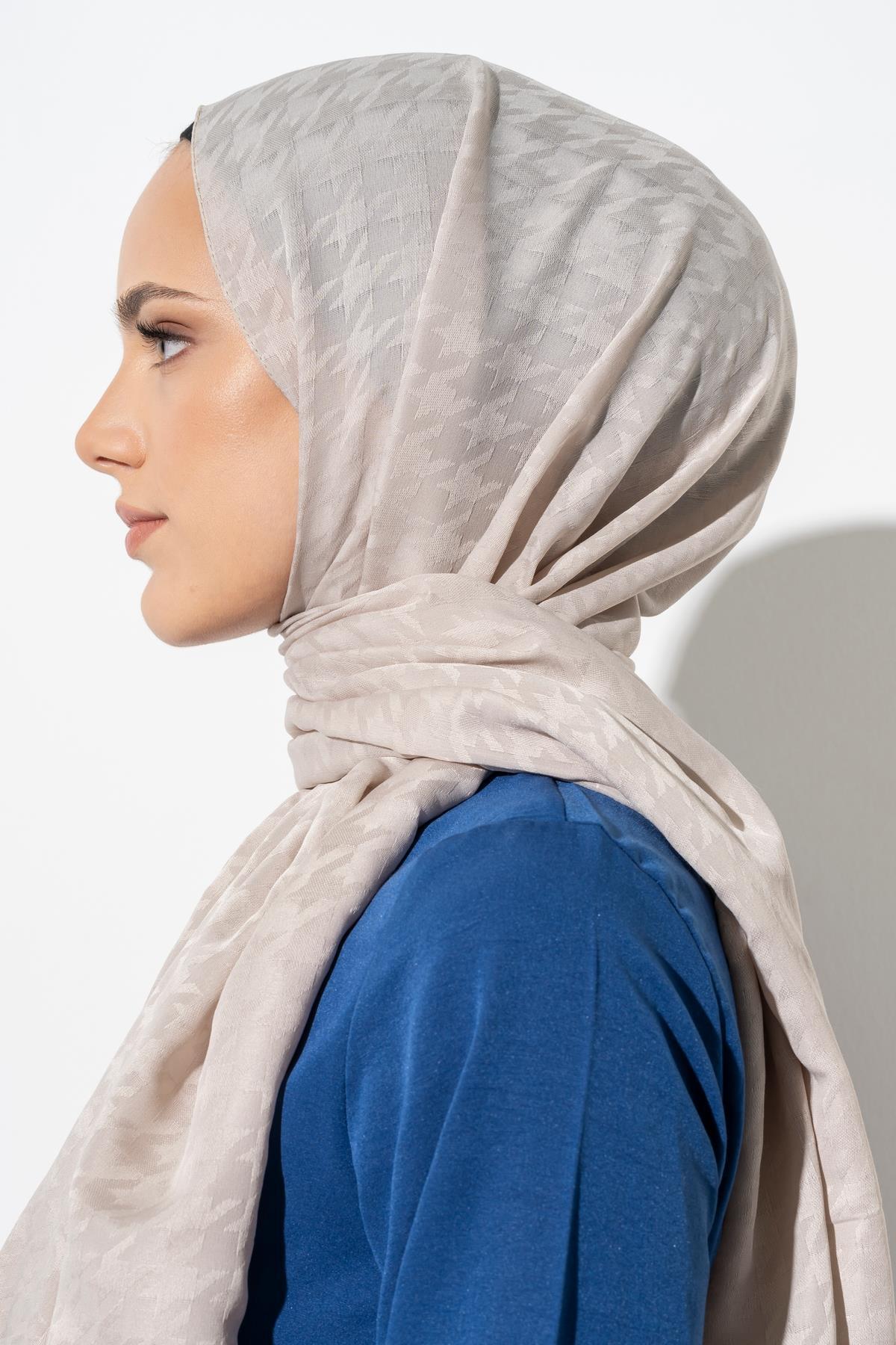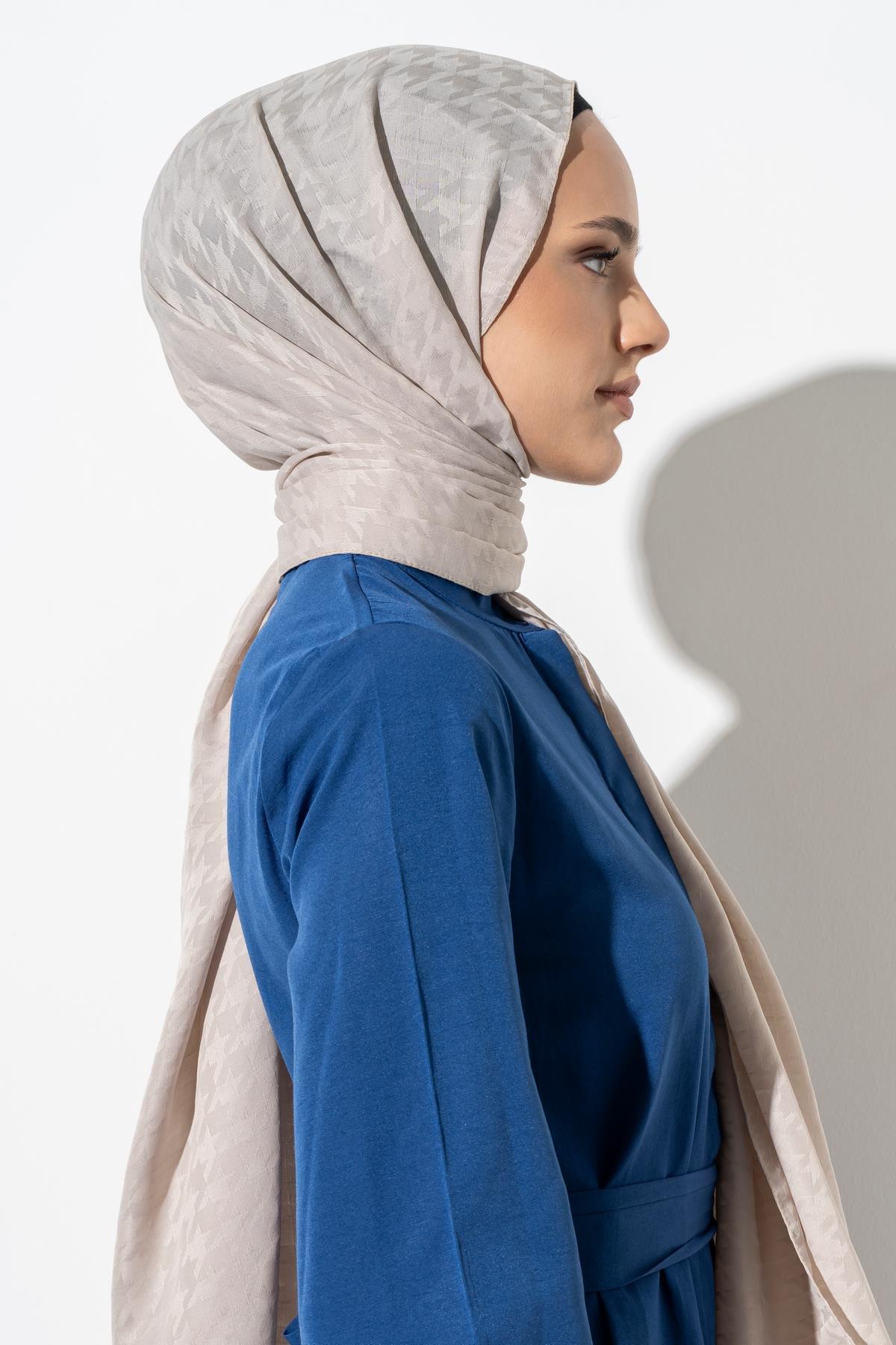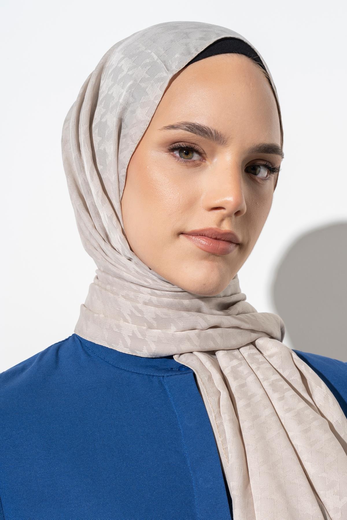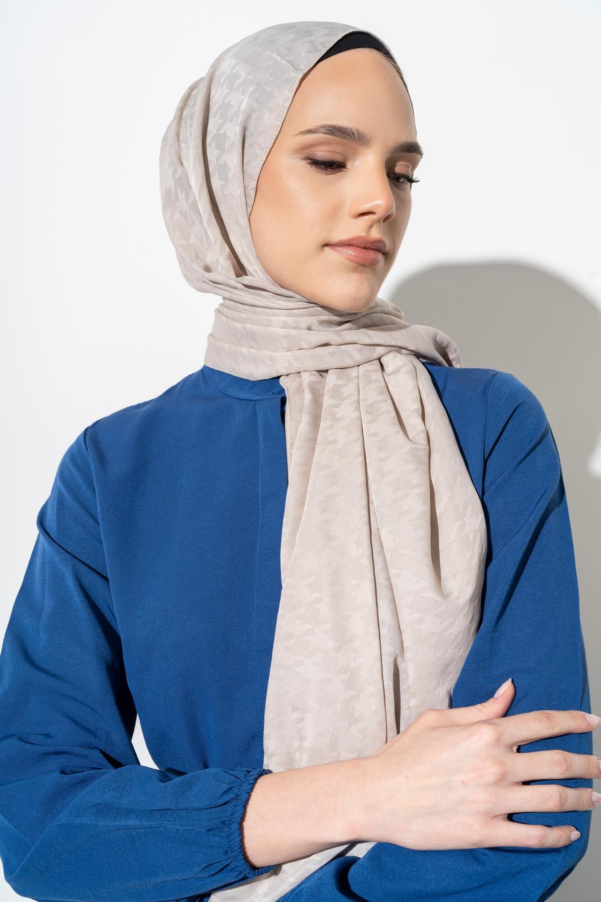 Kadın Tesettür Jakarlı Küçük Desen Kazayağı Şal TAŞ