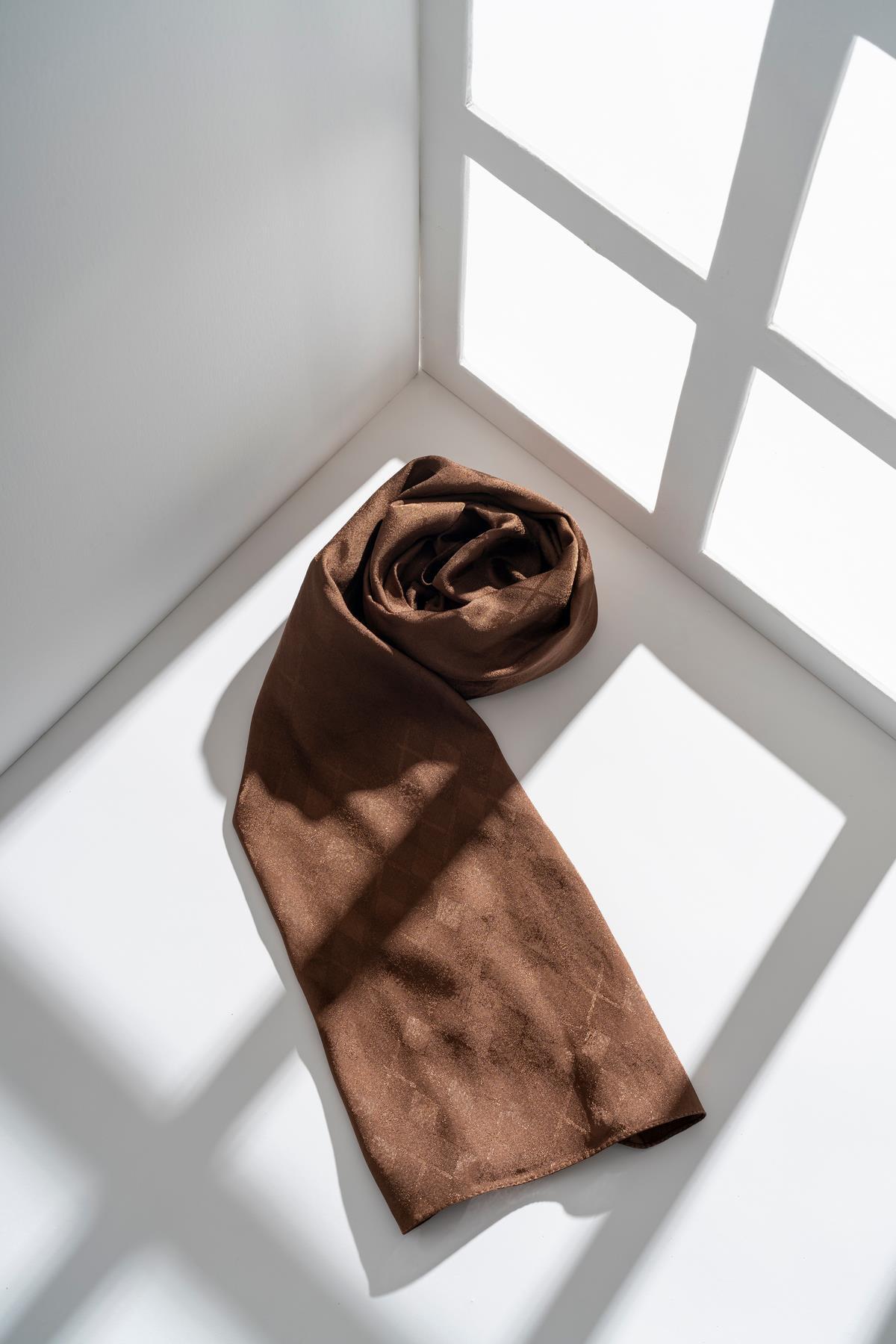 Kadın Tesettür Karışımlı Jakarlı Şal KOYU KAHVE