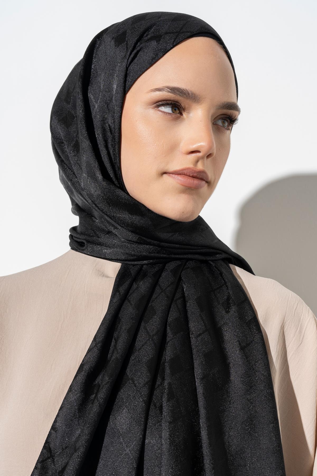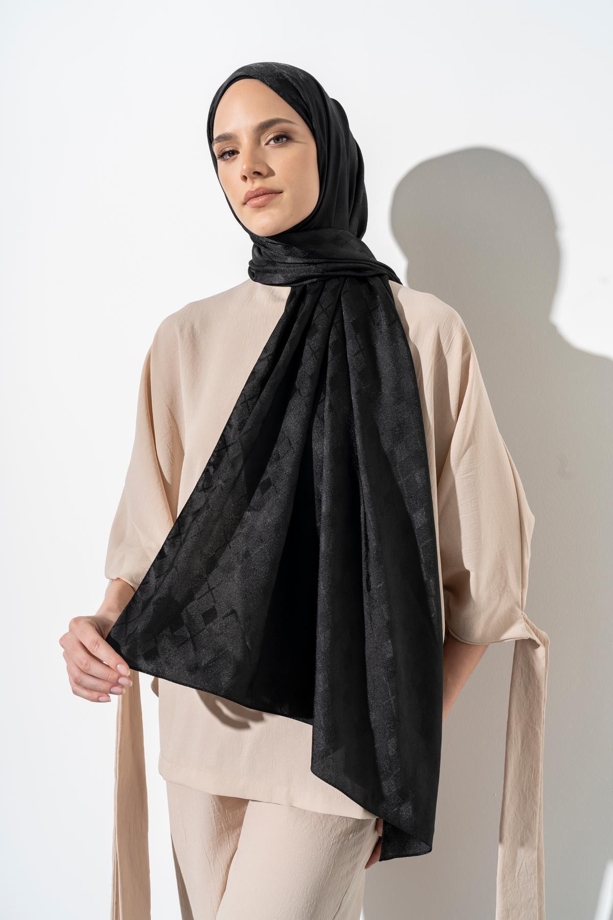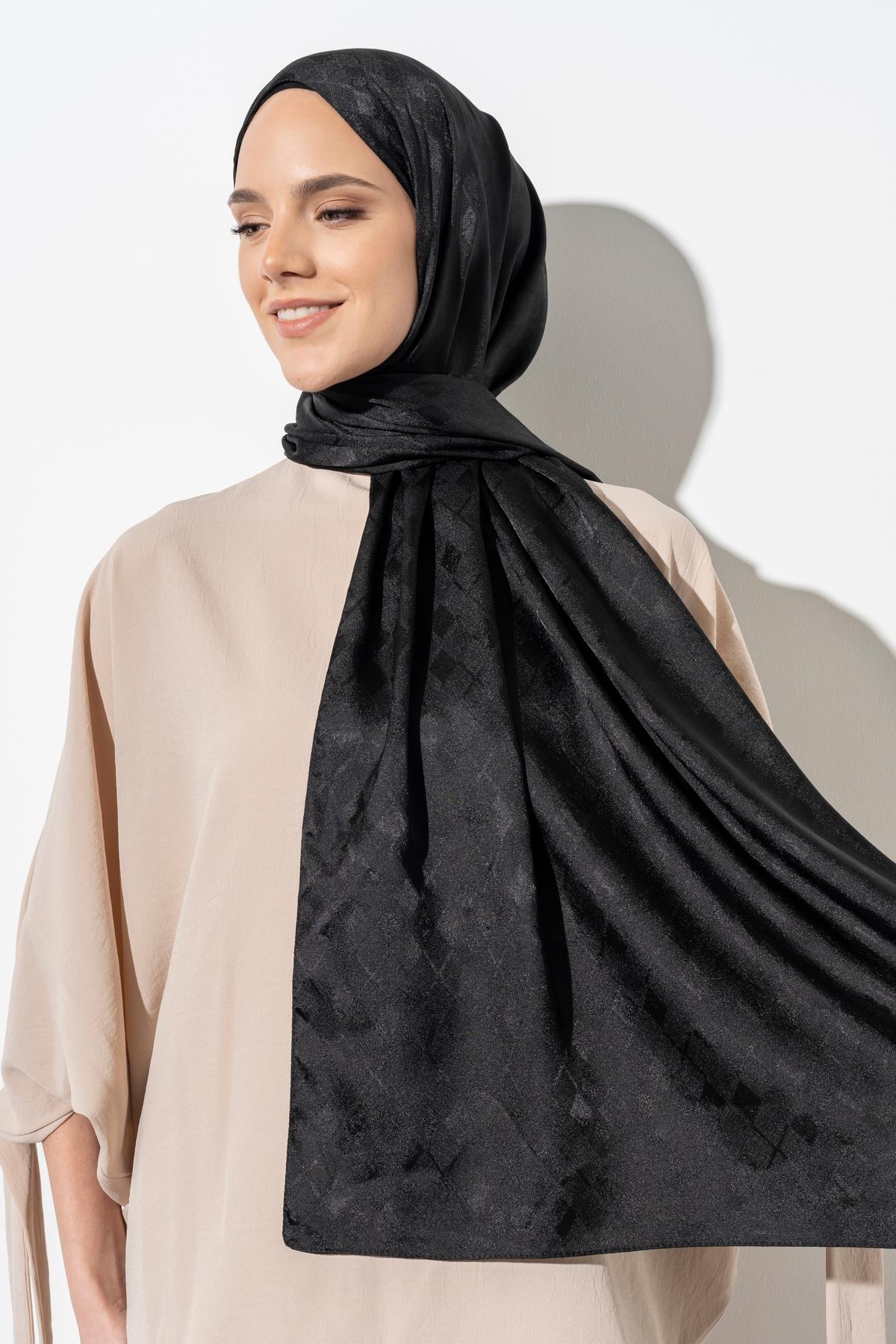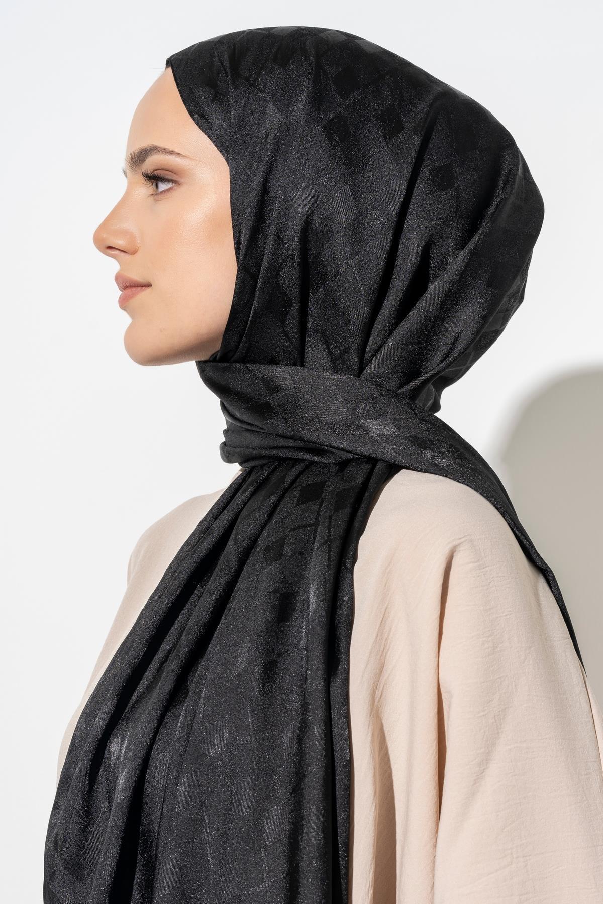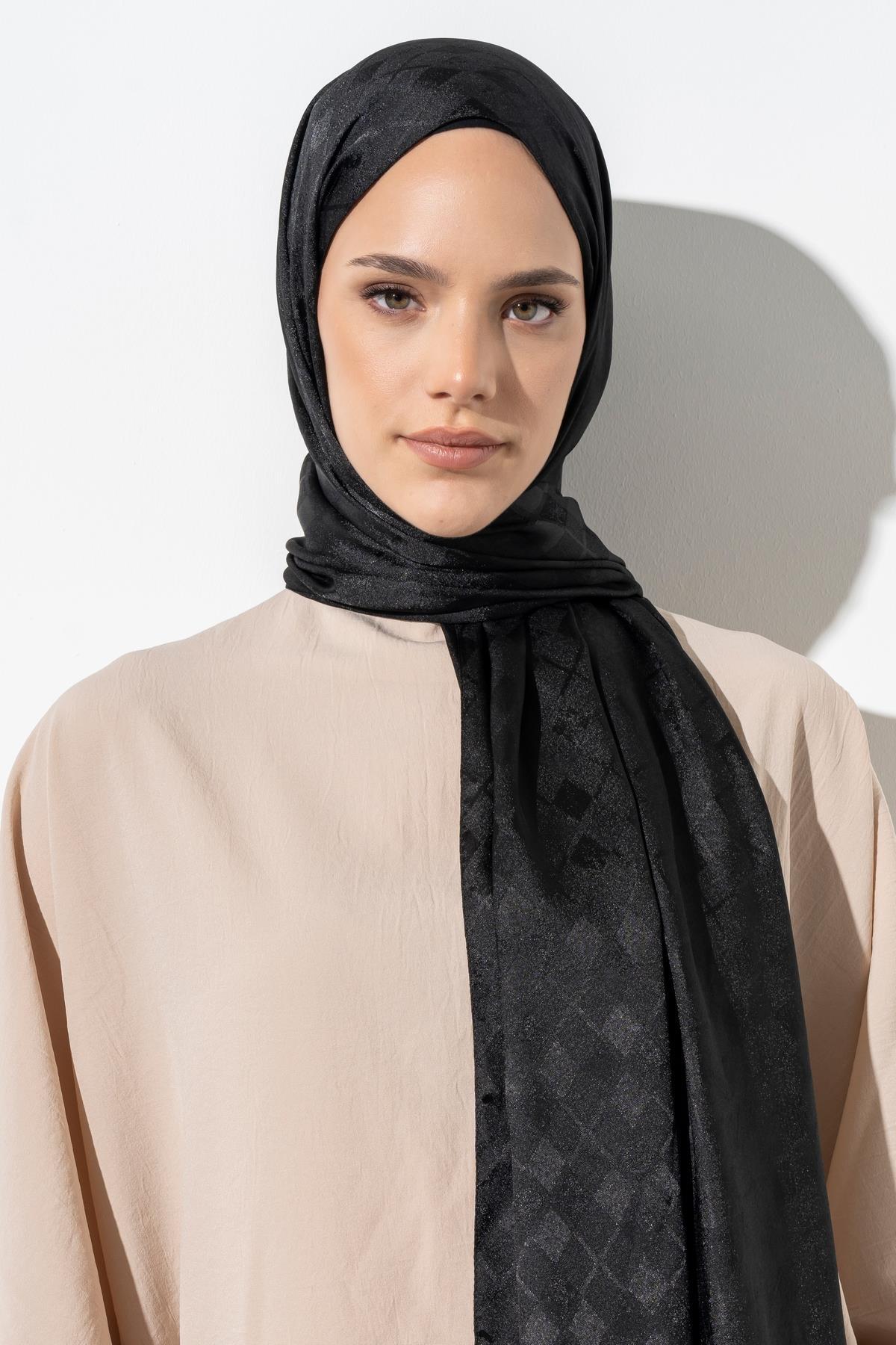 Kadın Tesettür Karışımlı Jakarlı Şal SİYAH