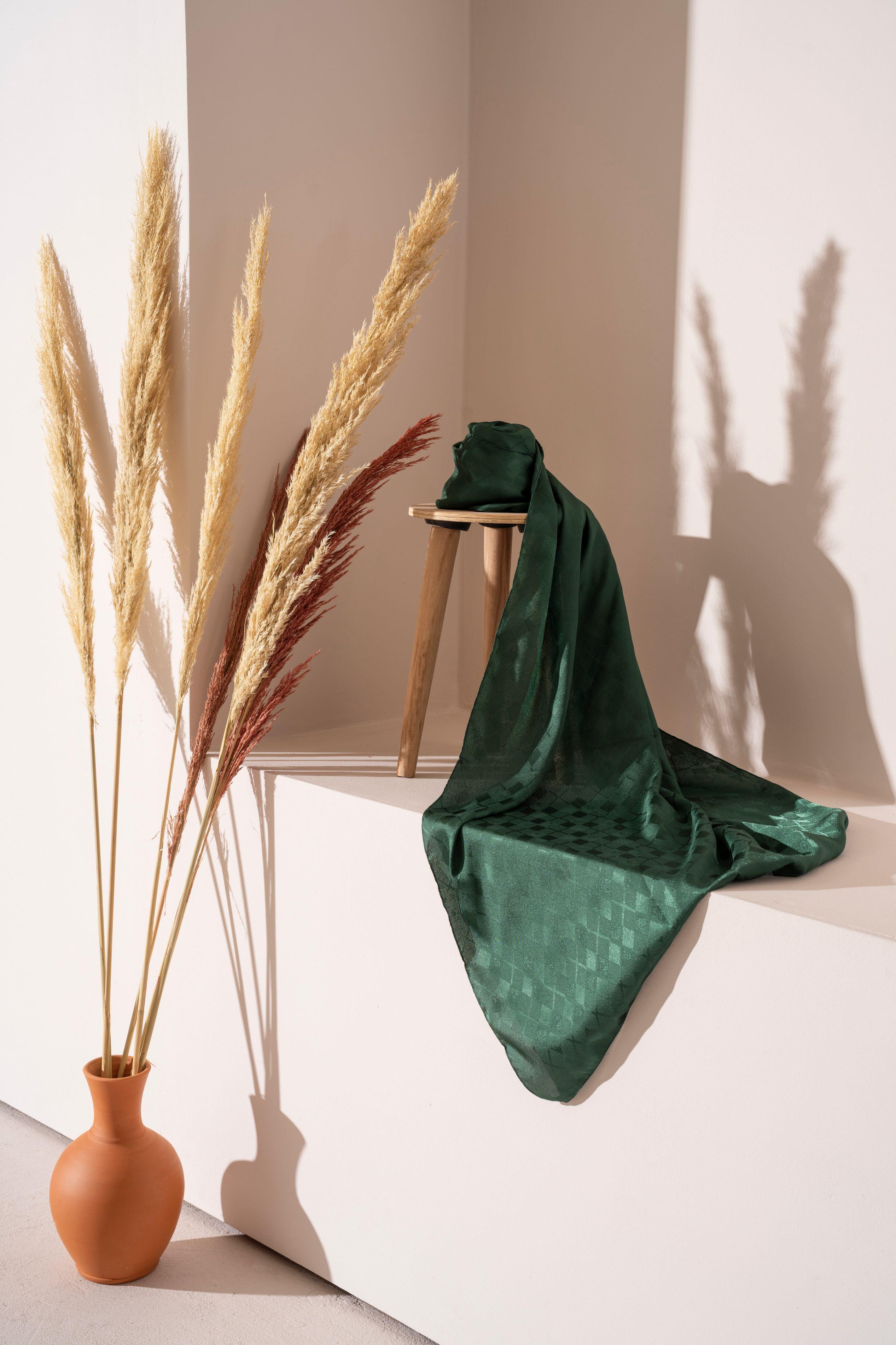 Kadın Tesettür Karışımlı Jakarlı Şal ZÜMRÜT