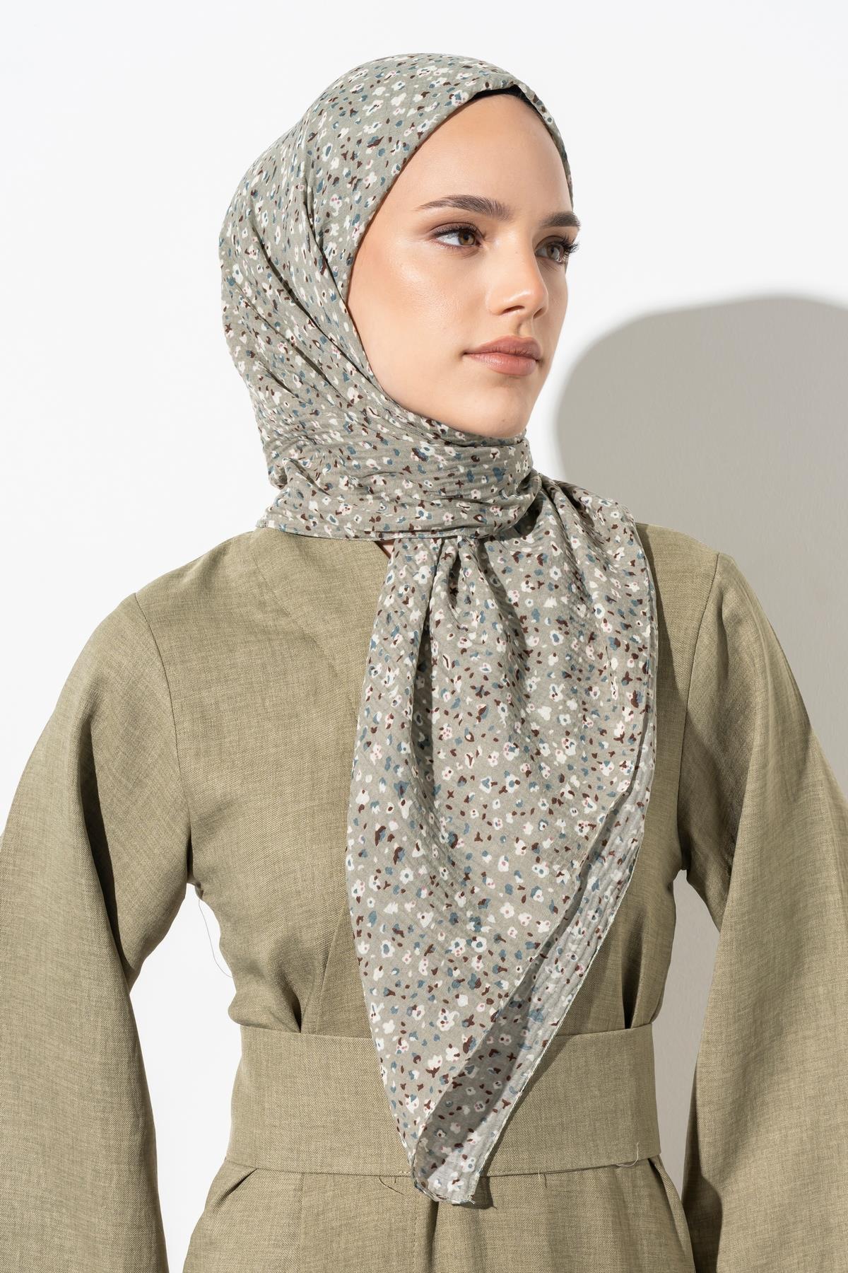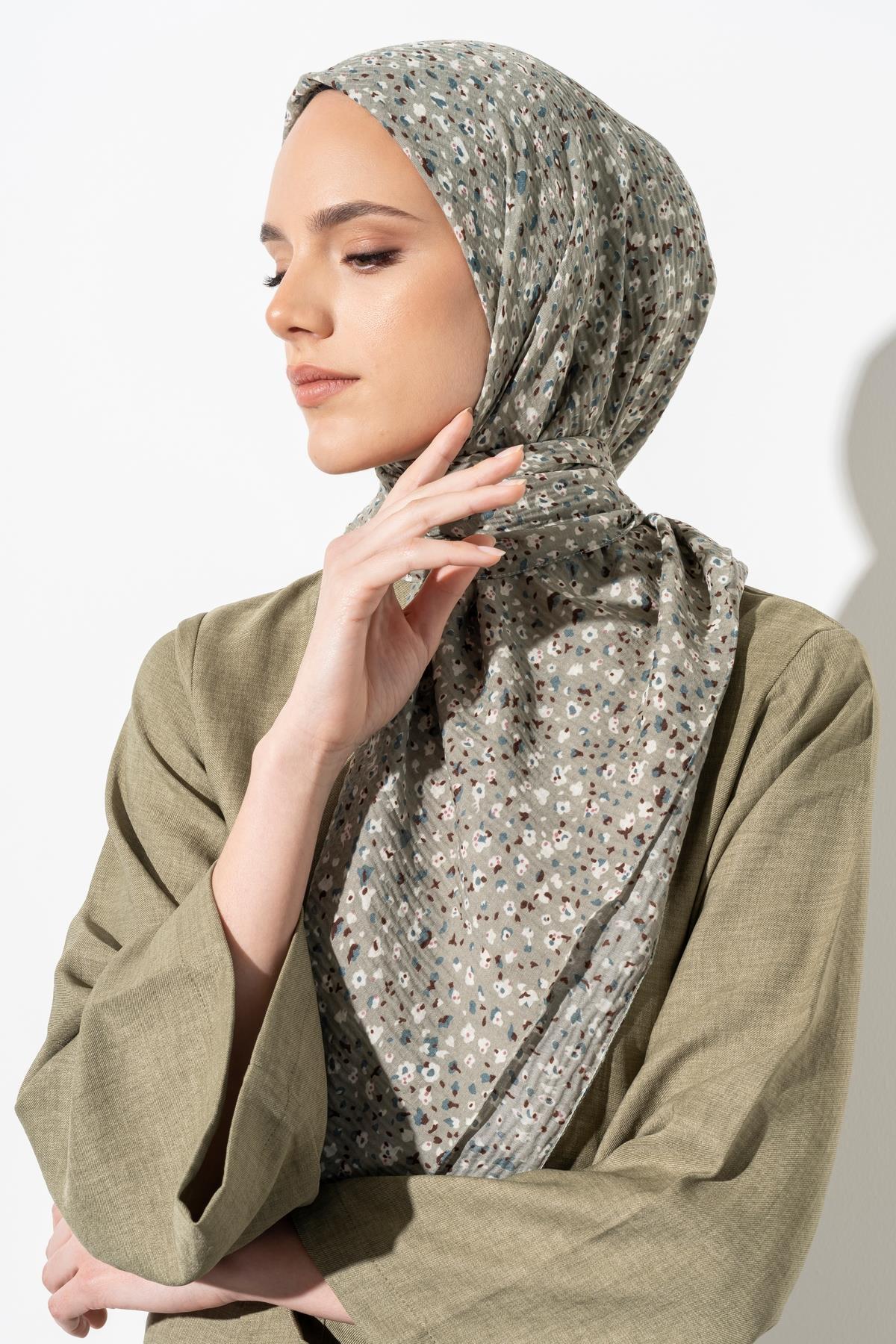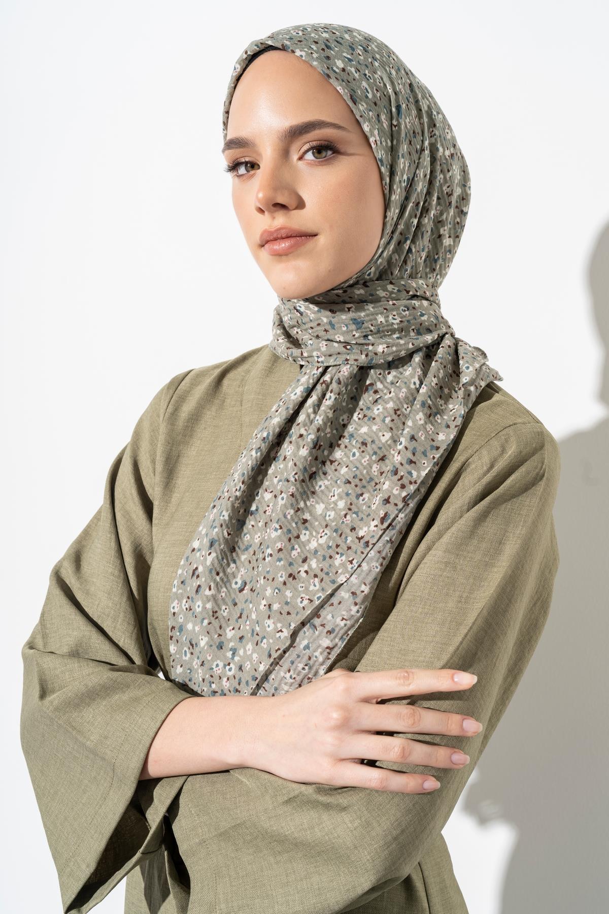 Kadın Tesettür Kırışmaz Bürümcük Eşarp ASKER YEŞİLİ