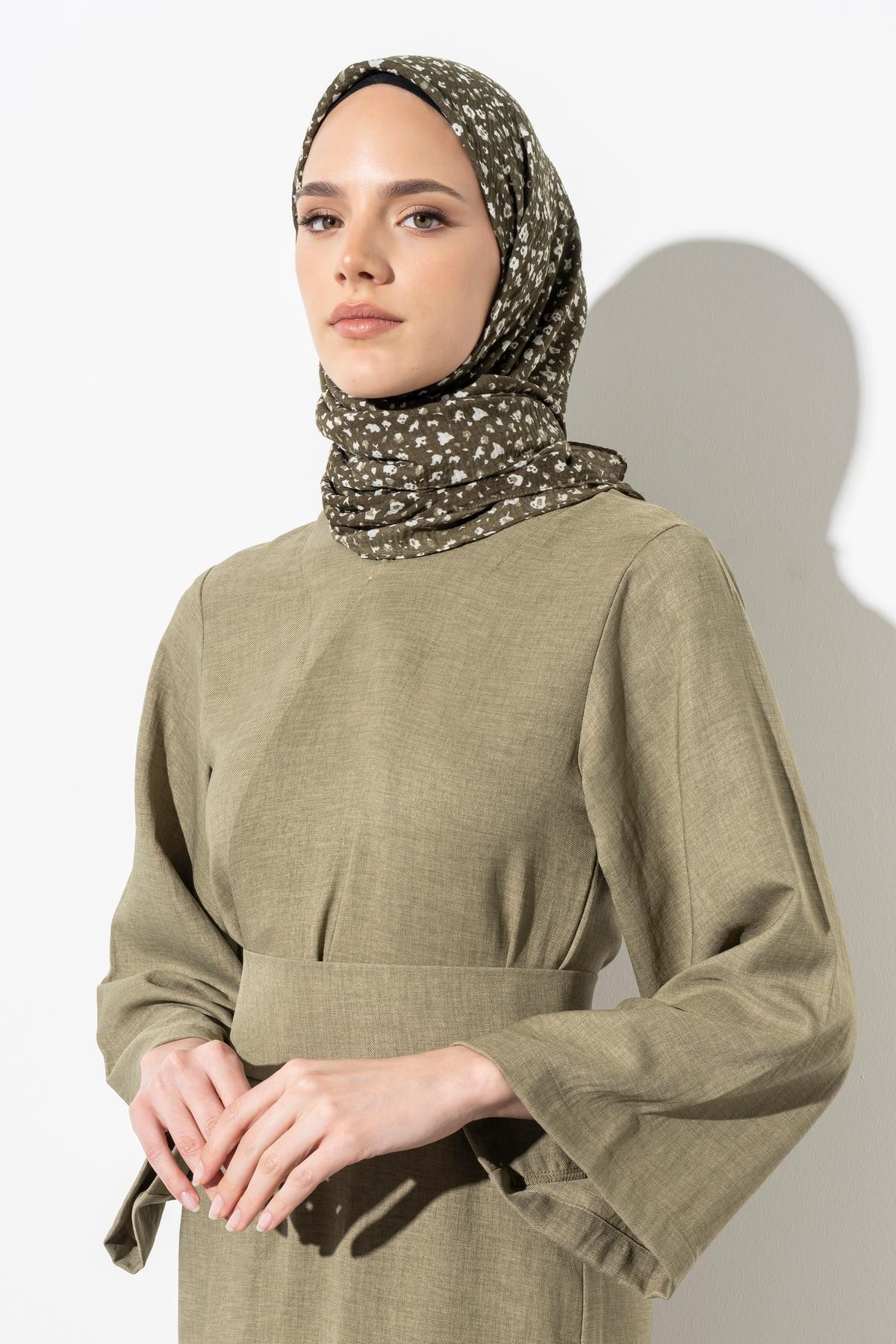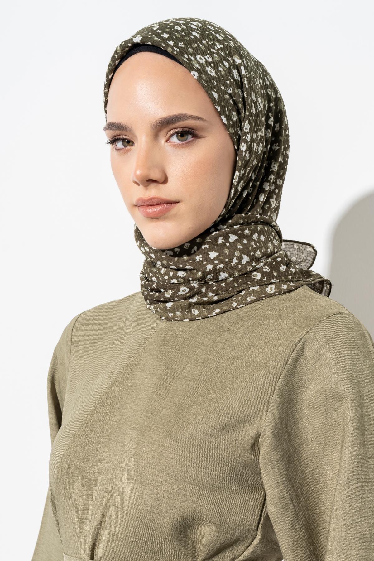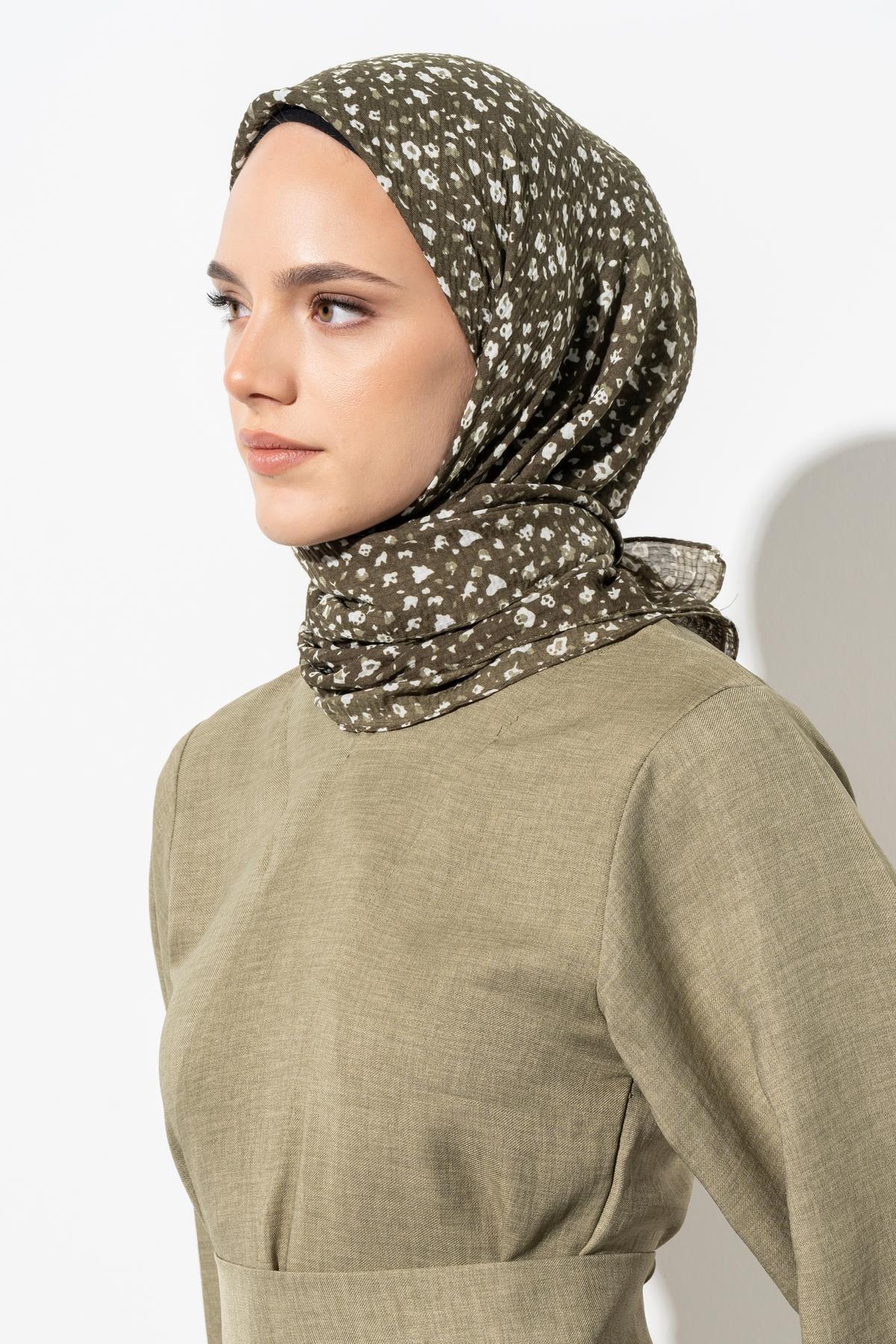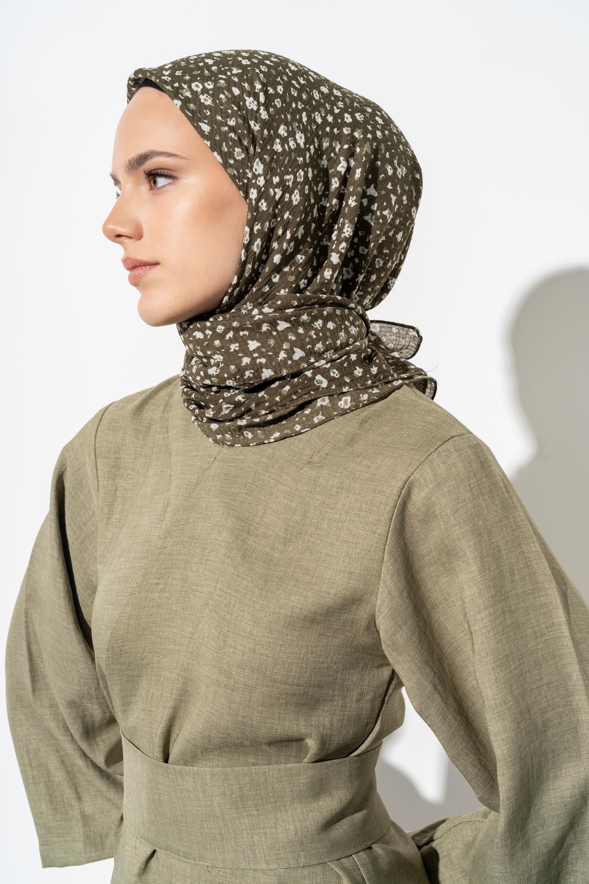 Kadın Tesettür Kırışmaz Bürümcük Eşarp ASKER YEŞİLİ