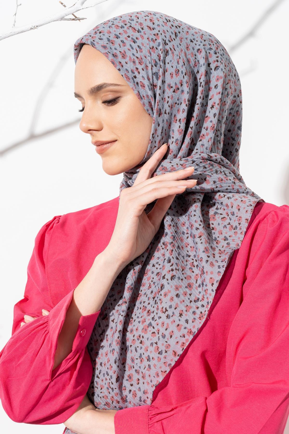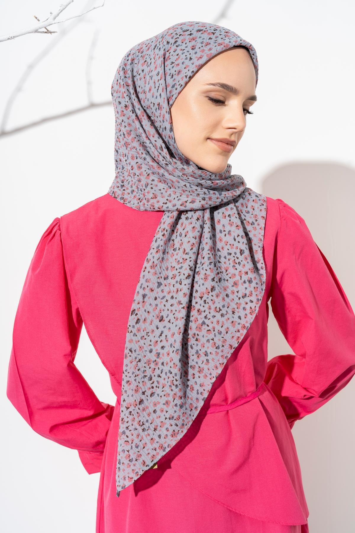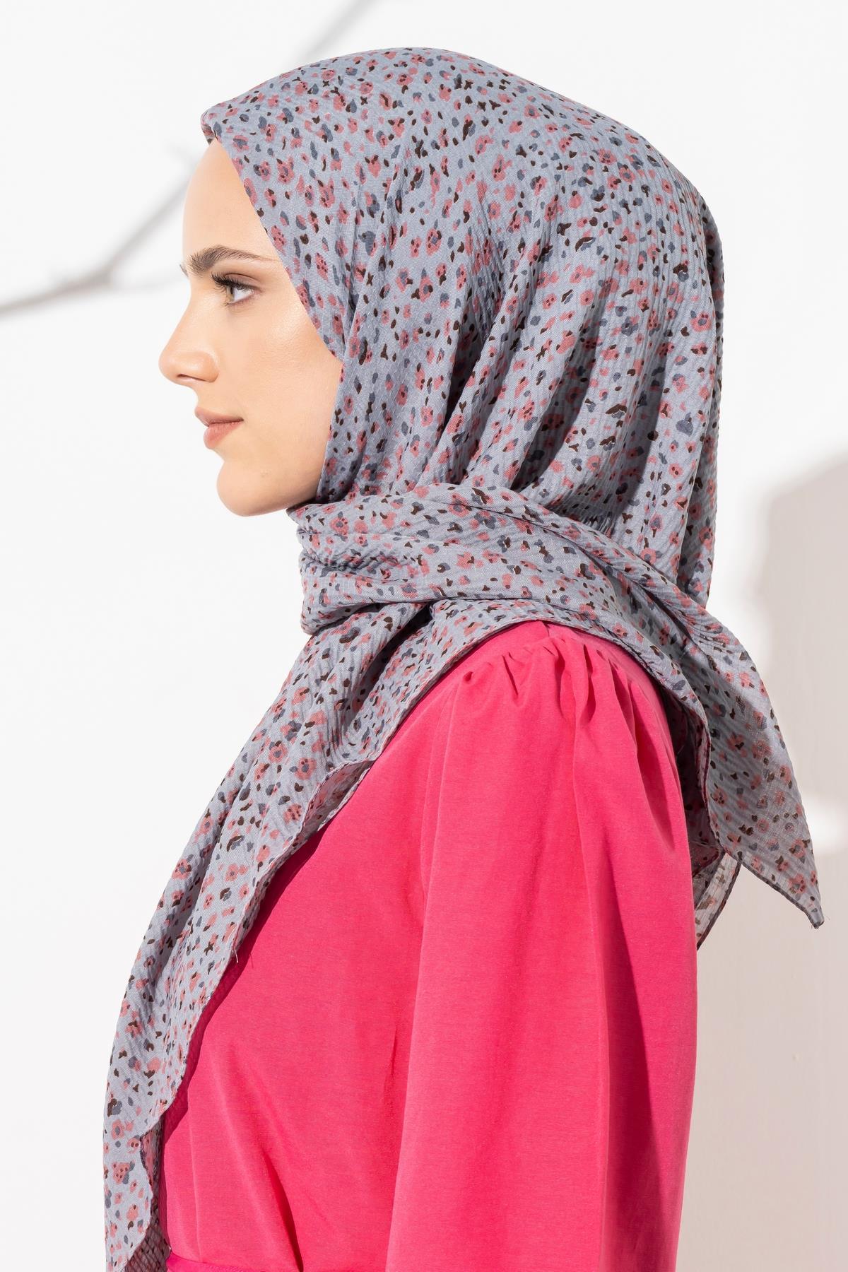 Kadın Tesettür Kırışmaz Bürümcük Eşarp GRİ-PEMBE