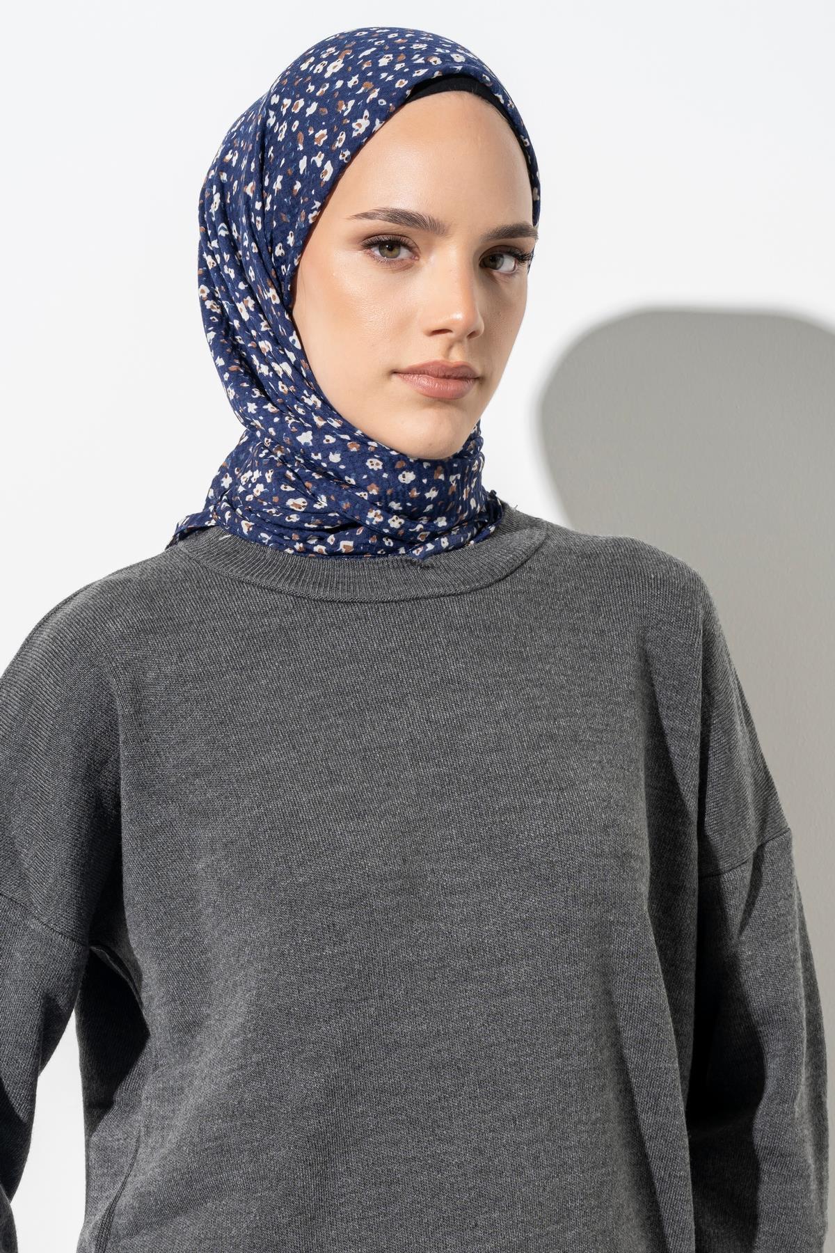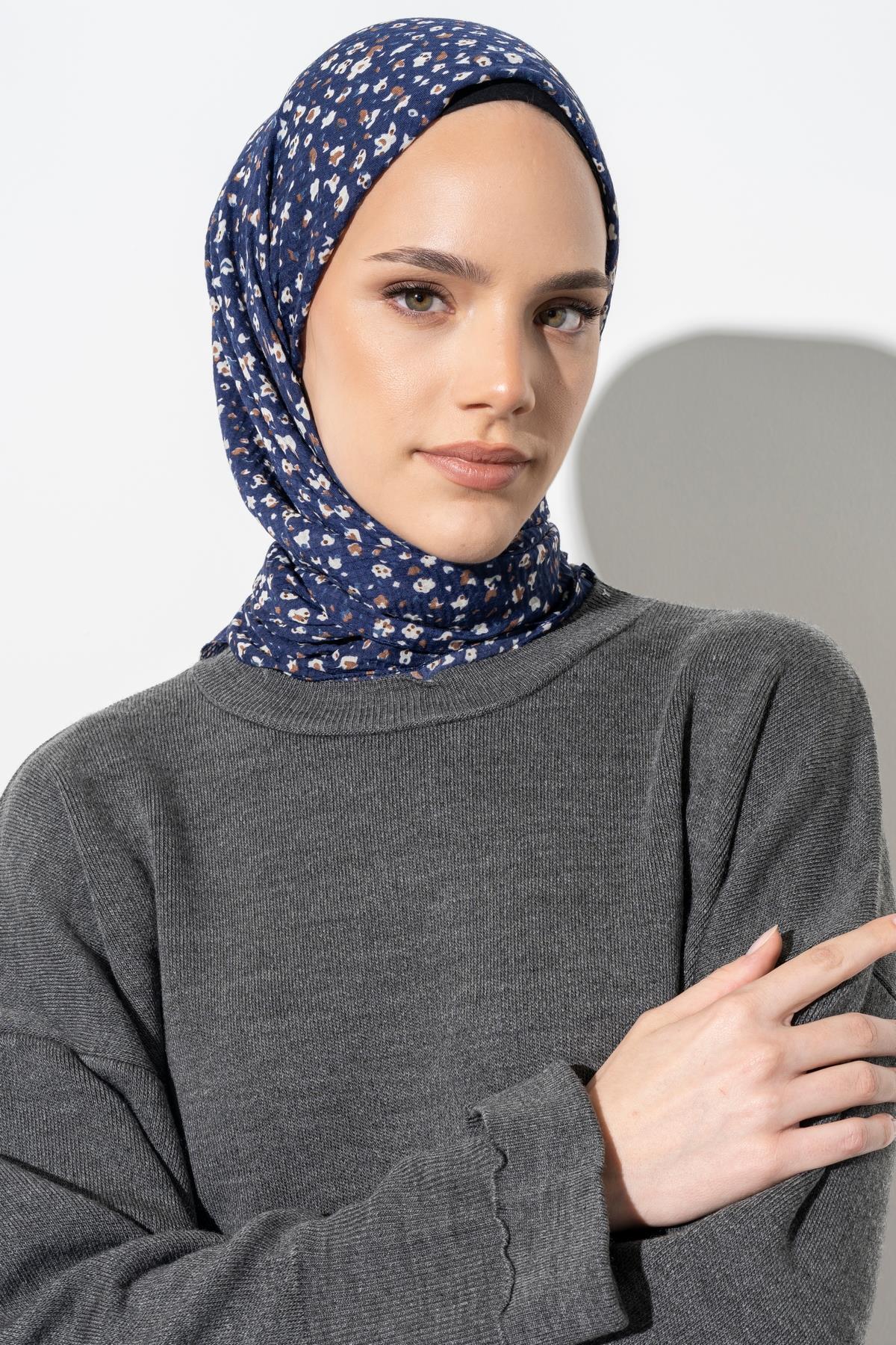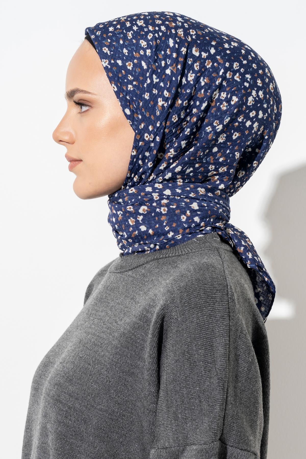 Kadın Tesettür Kırışmaz Bürümcük Eşarp LACİVERT-YENİ DÜNYA