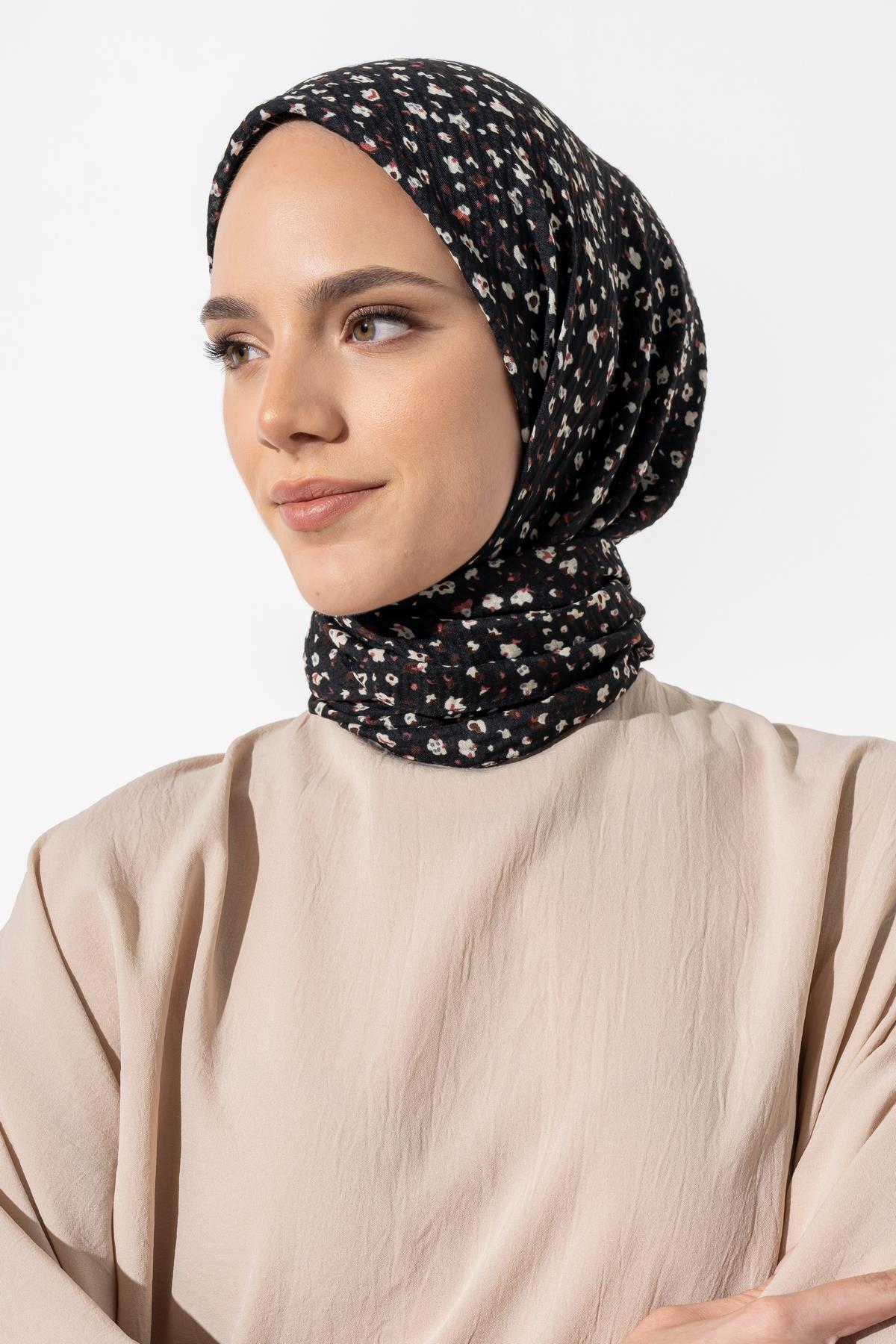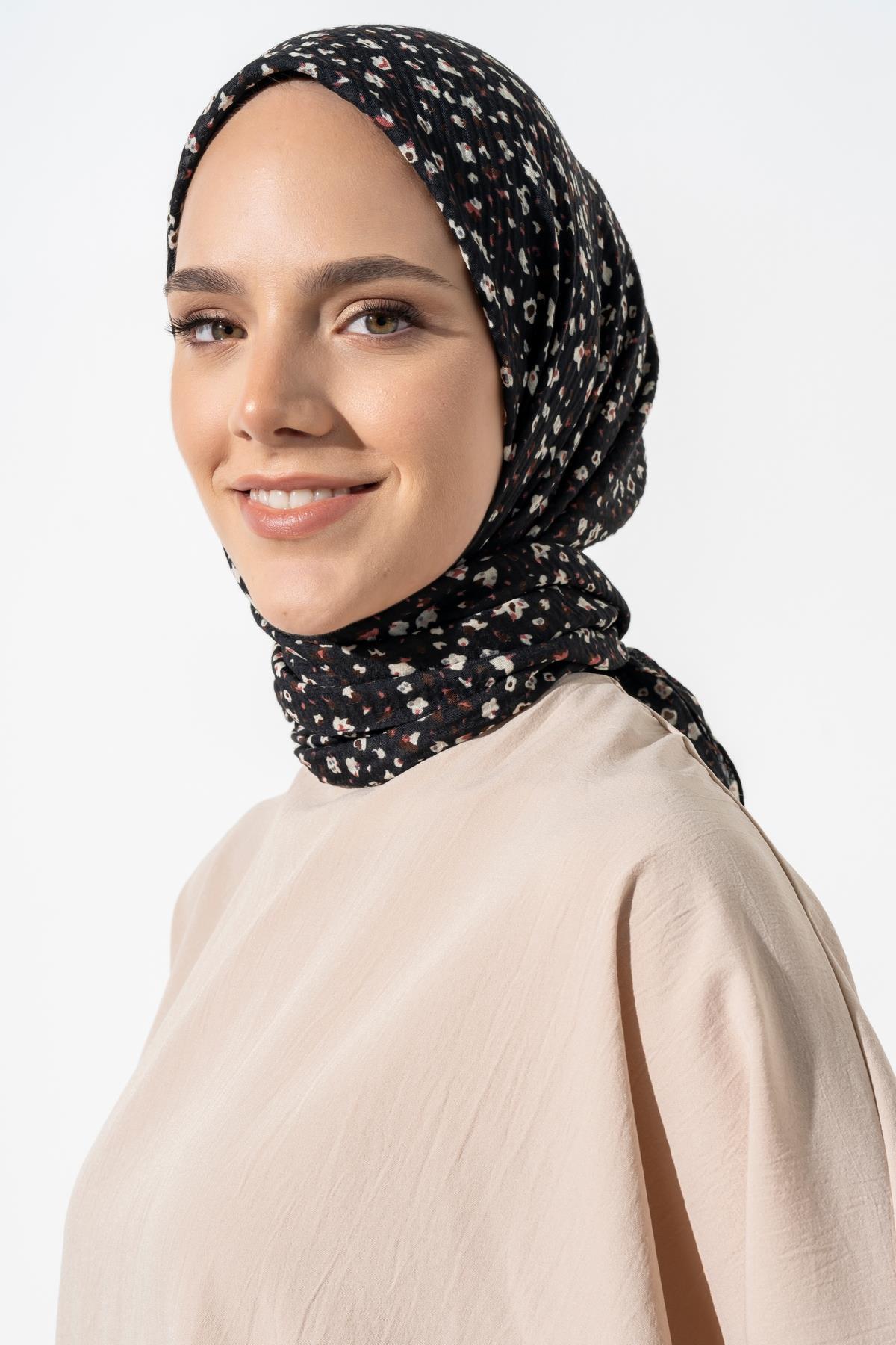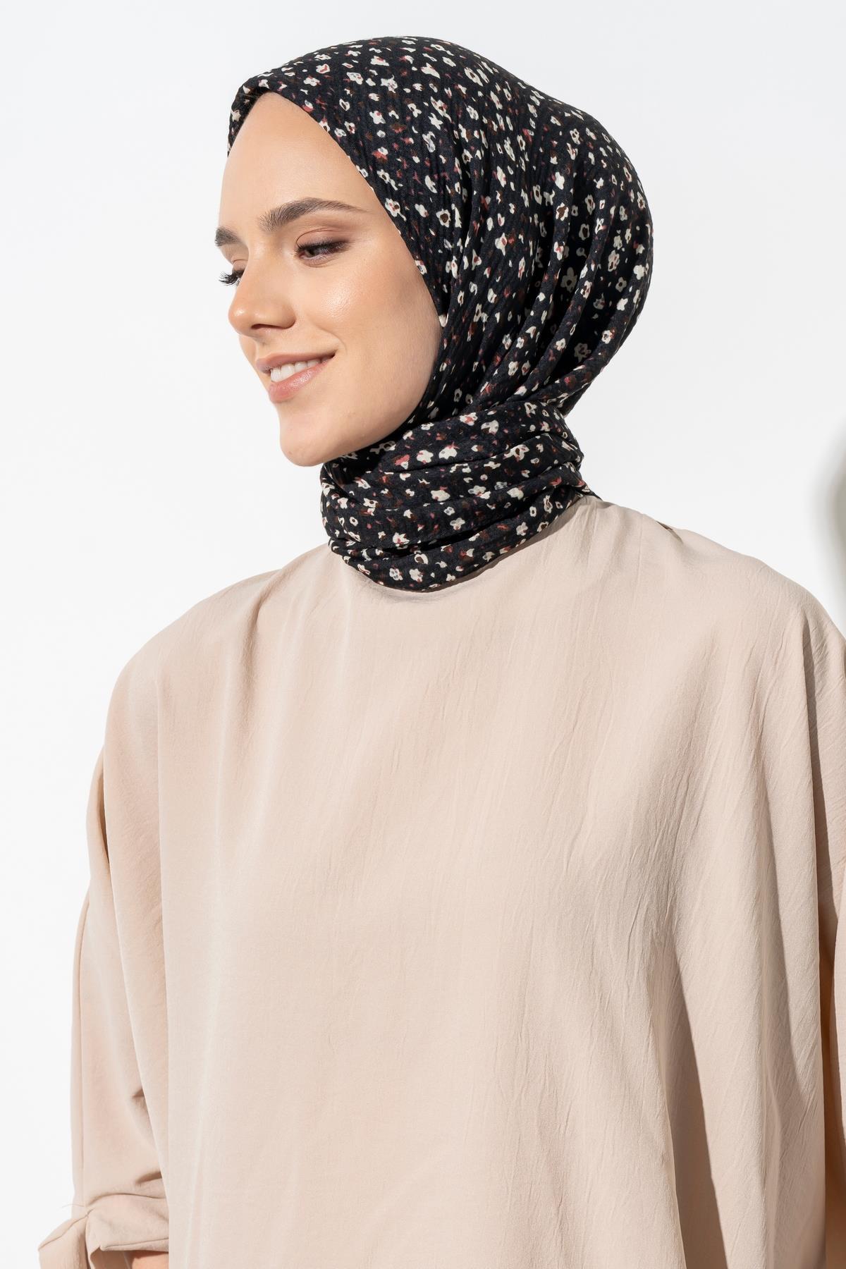 Kadın Tesettür Kırışmaz Bürümcük Eşarp SİYAH-PEMBE