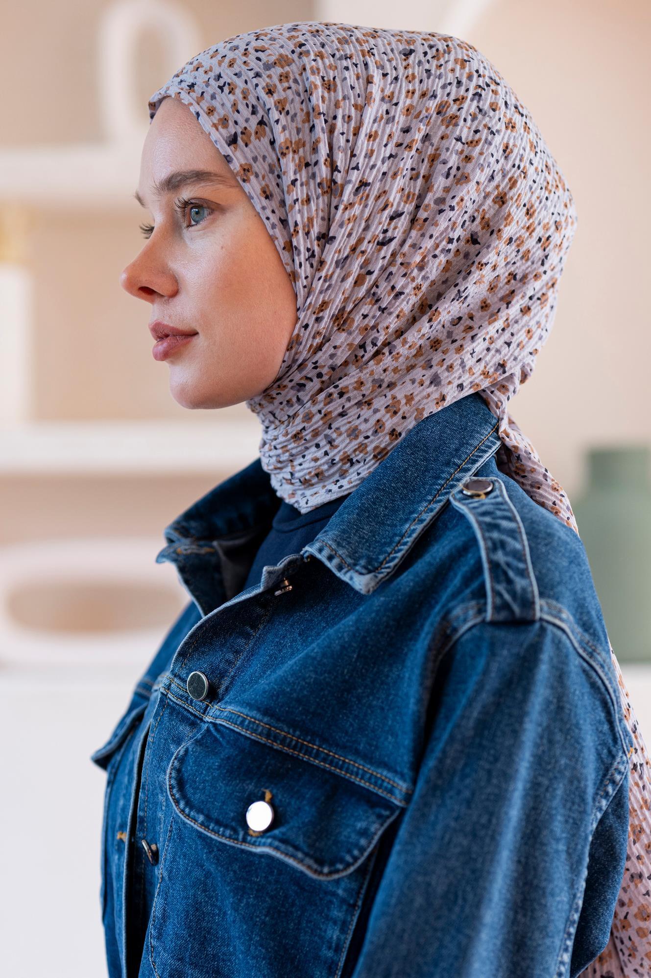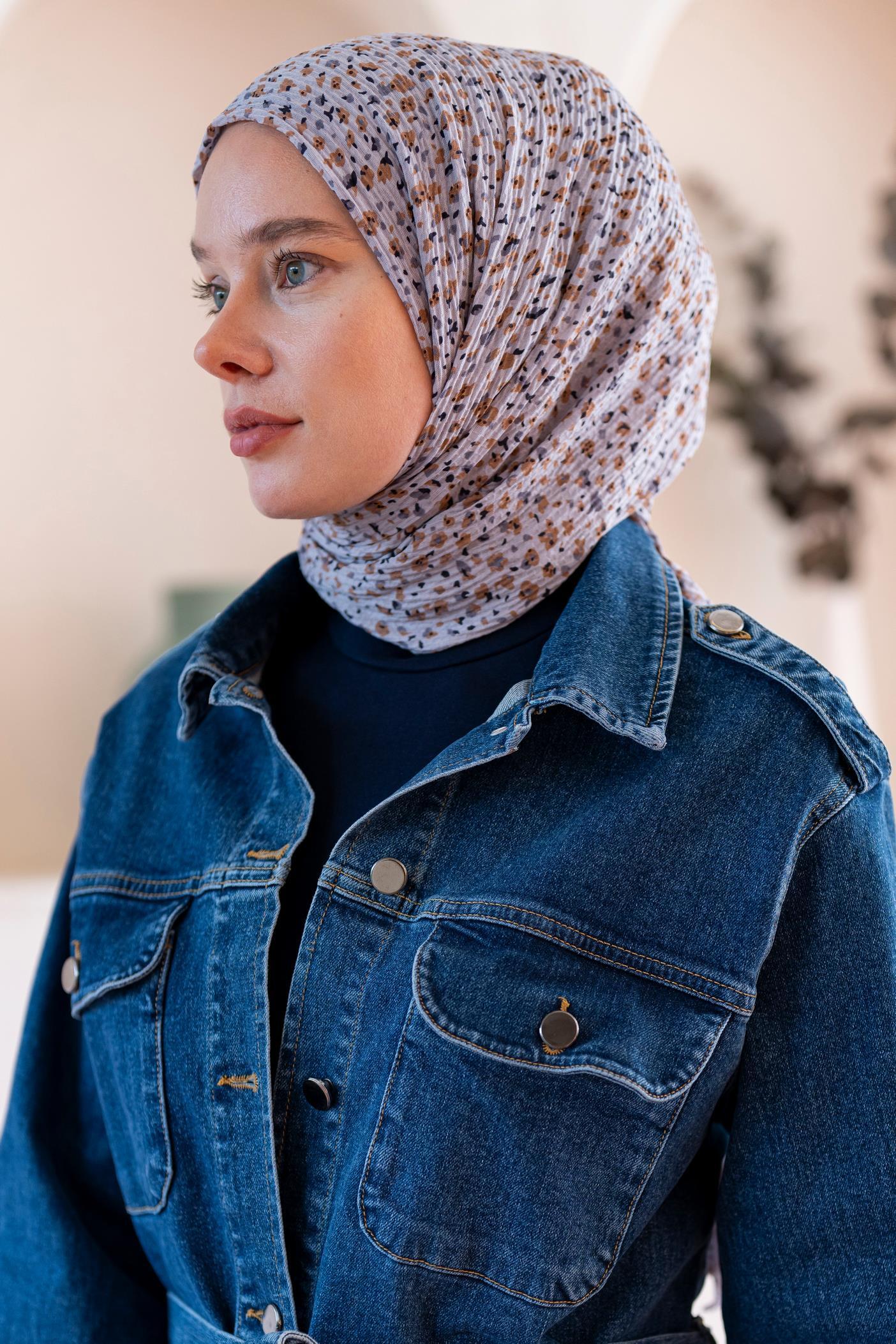 Kadın Ütü İstemeyen Çakıl Desen Bürümcük Şal 190*80 Cm AÇIK GRİ KAHVE