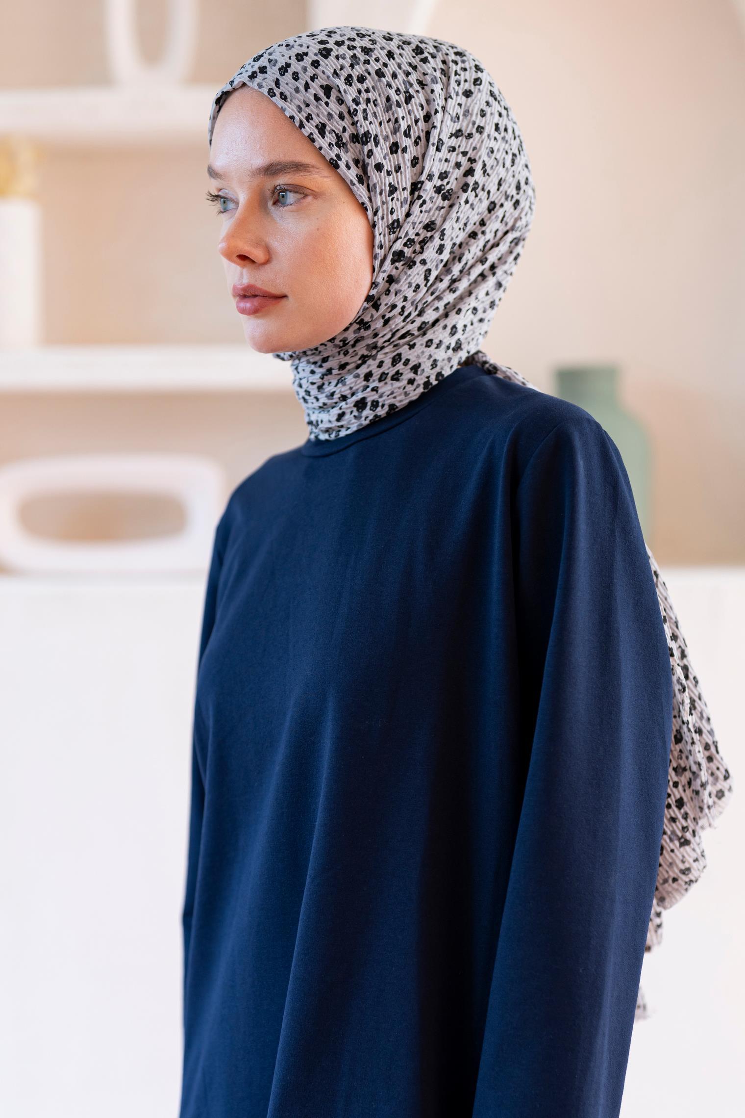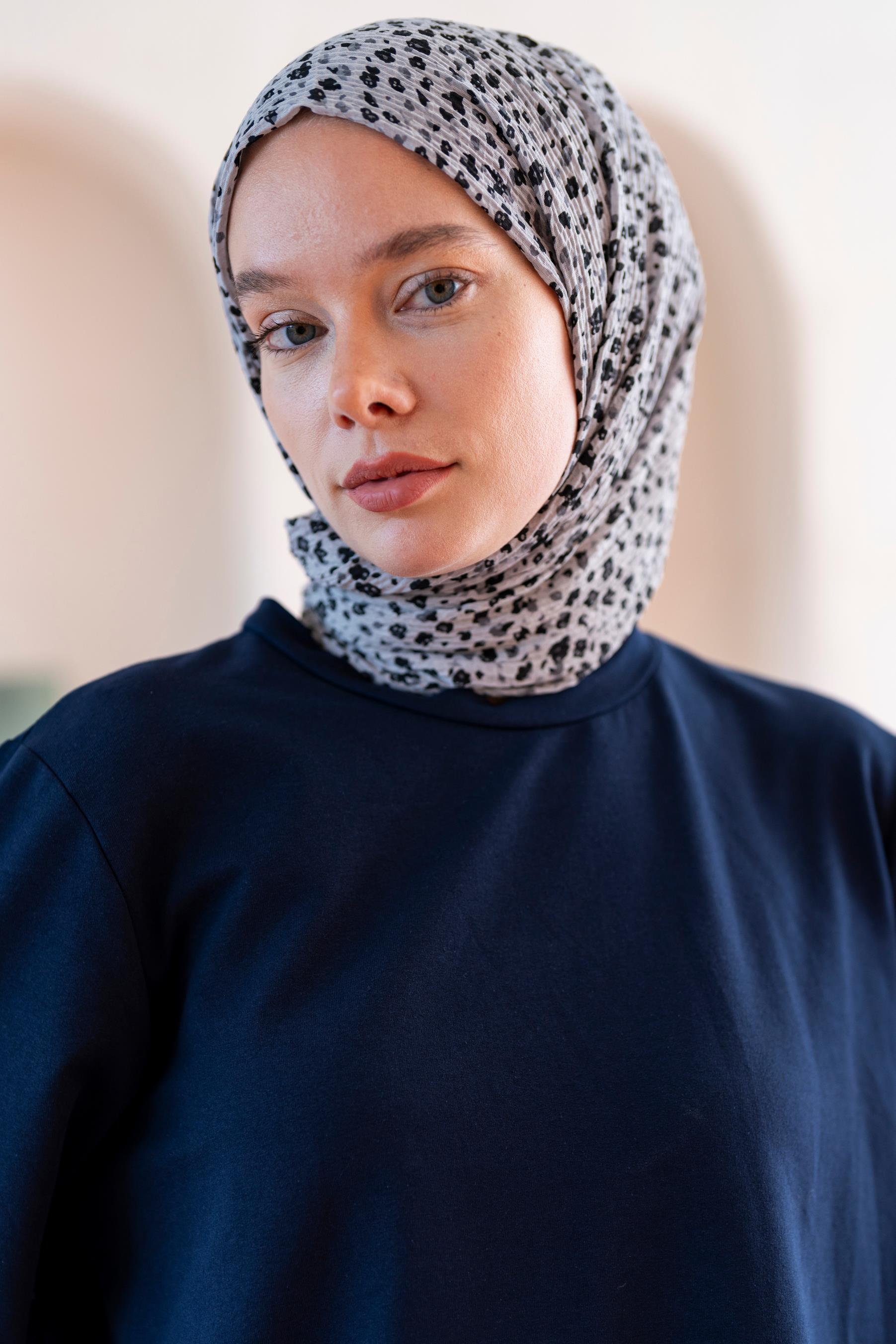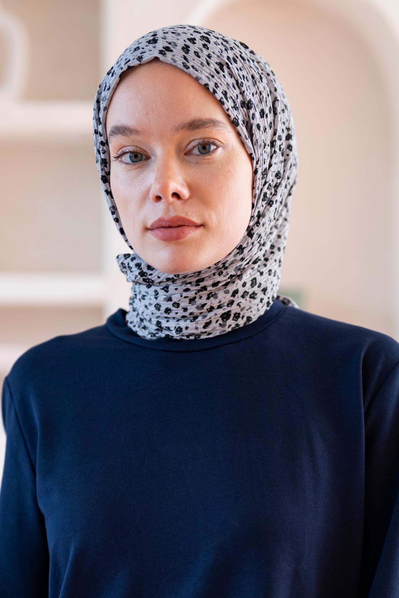 Kadın Ütü İstemeyen Çakıl Desen Bürümcük Şal 190*80 Cm AÇIK GRİ SİYAH