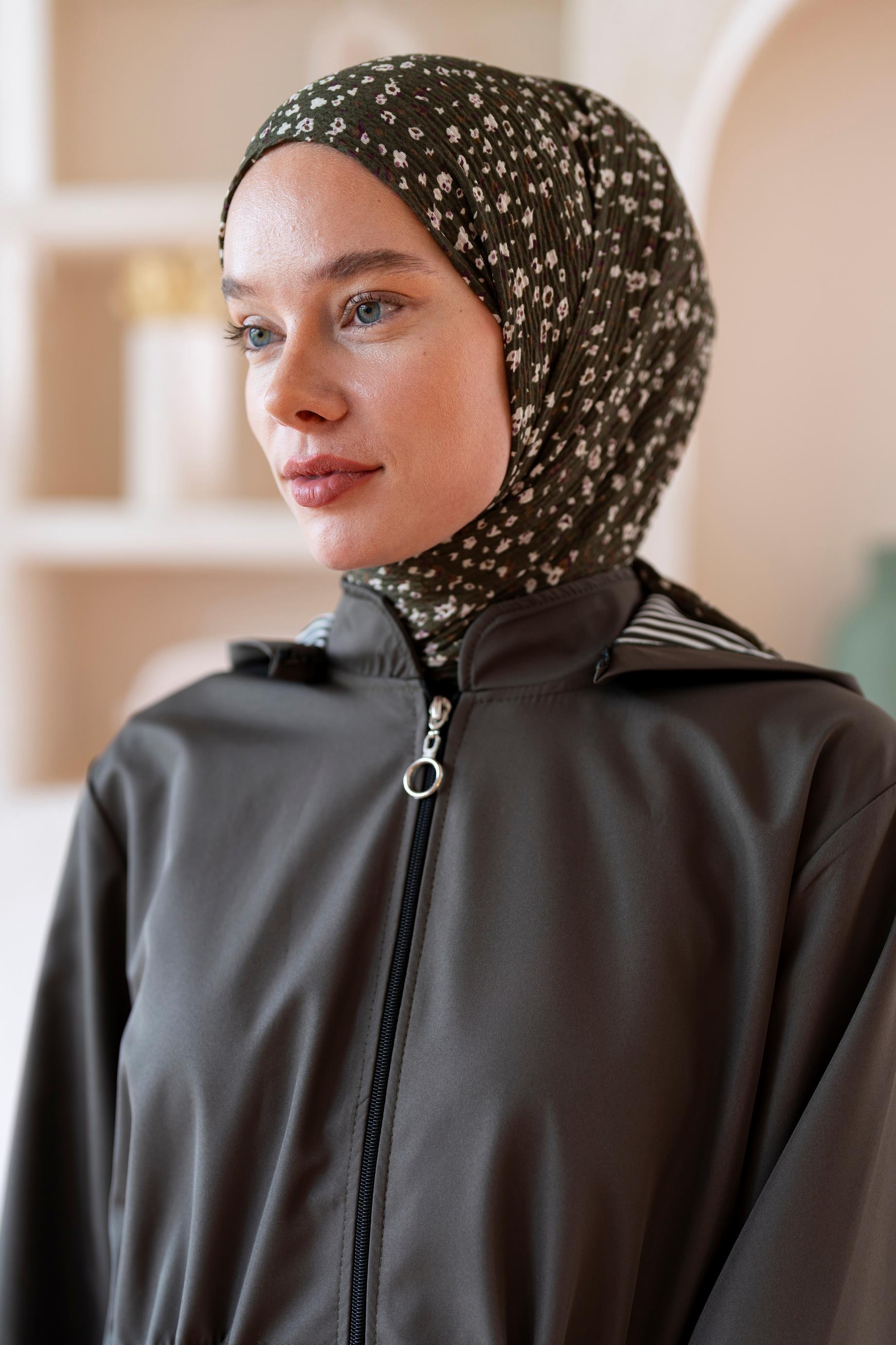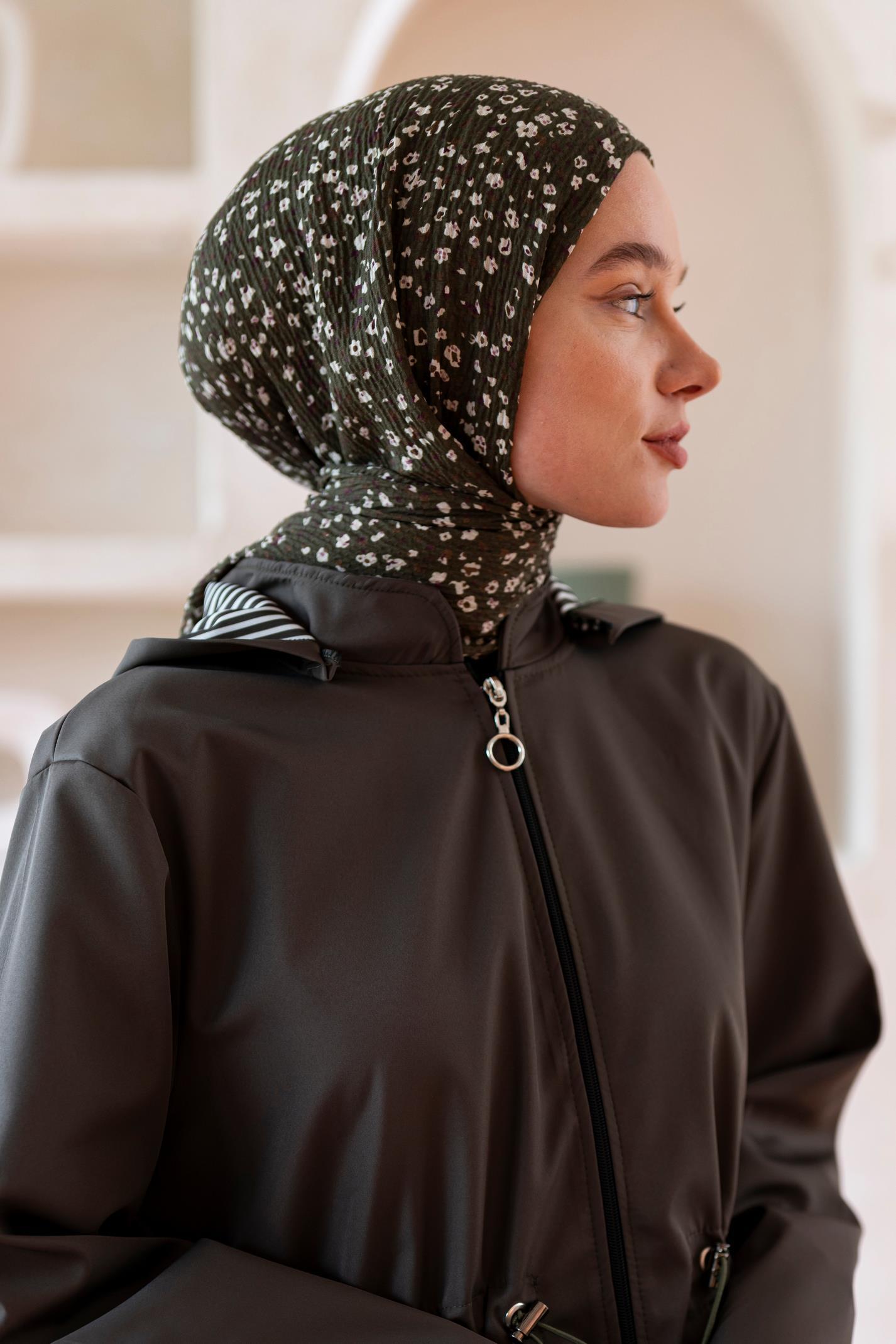 Kadın Ütü İstemeyen Çakıl Desen Bürümcük Şal 190*80 Cm HAKİ KREM