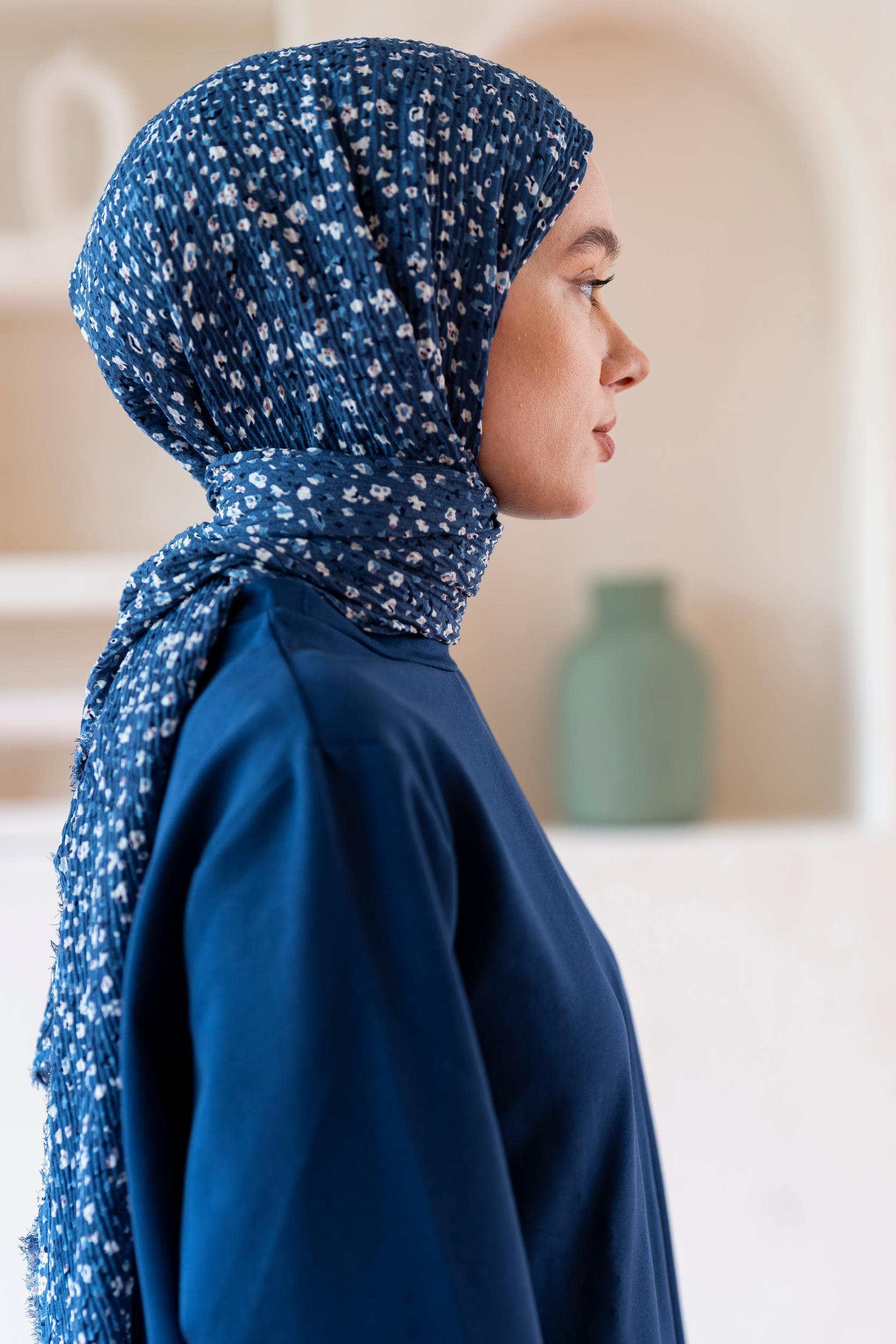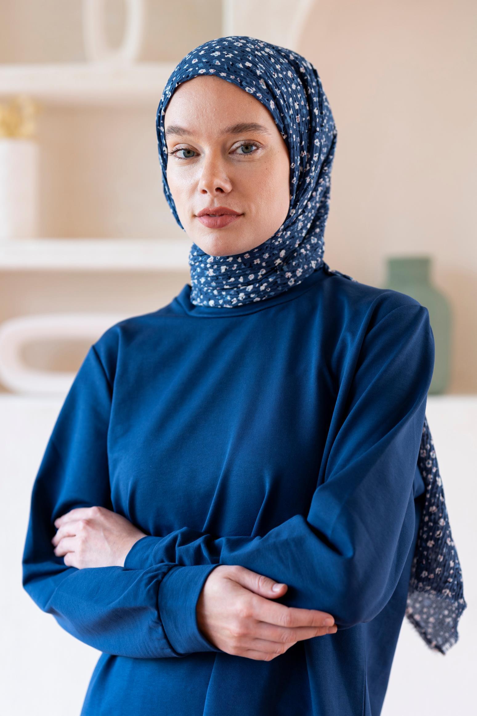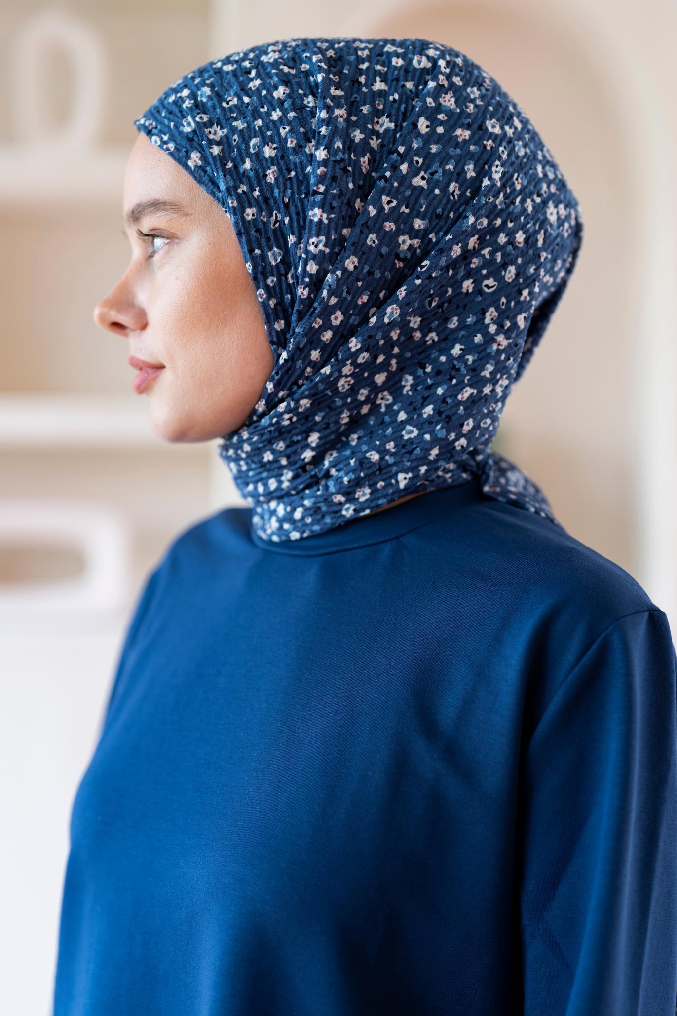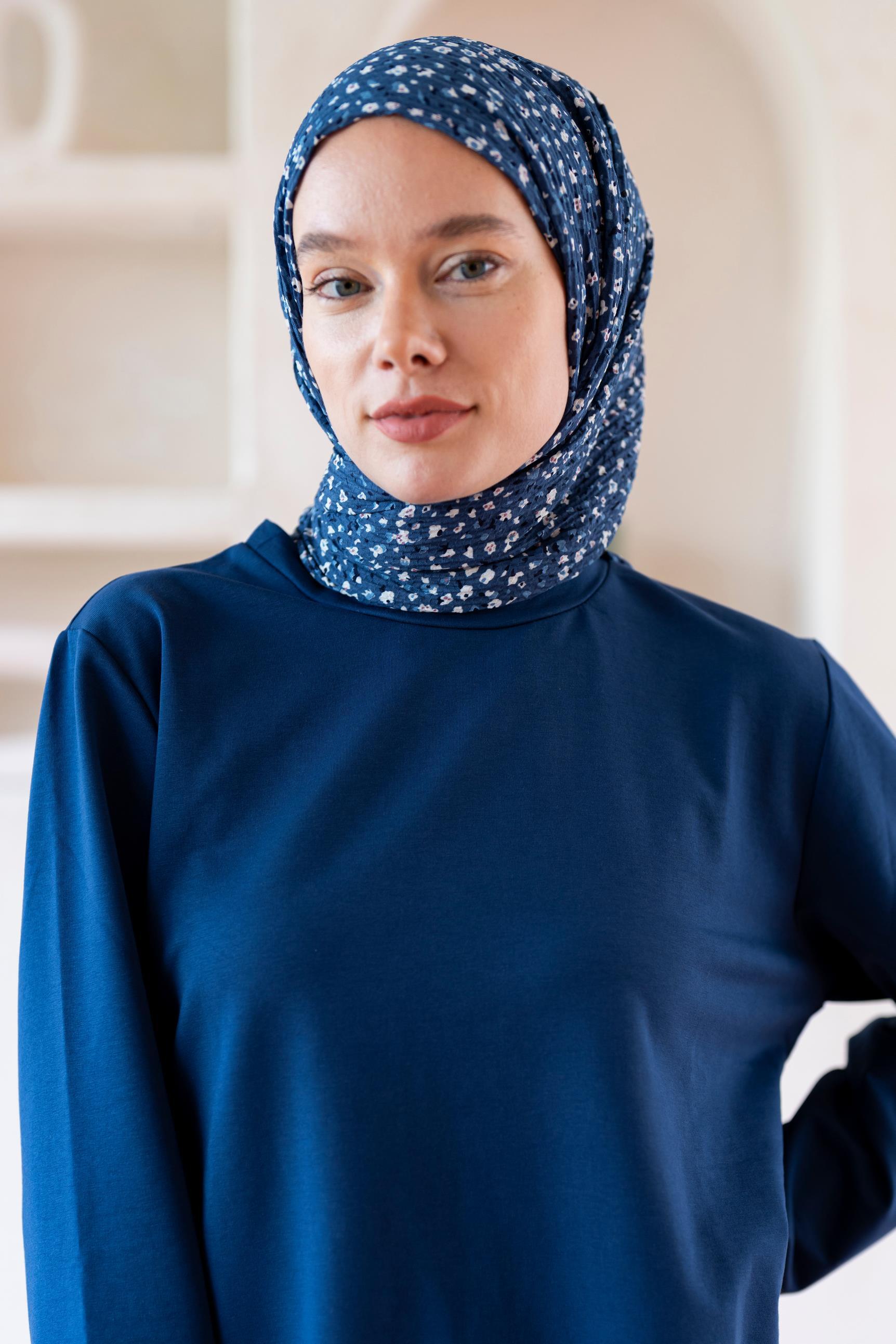 Kadın Ütü İstemeyen Çakıl Desen Bürümcük Şal 190*80 Cm İNDİGO BEYAZ