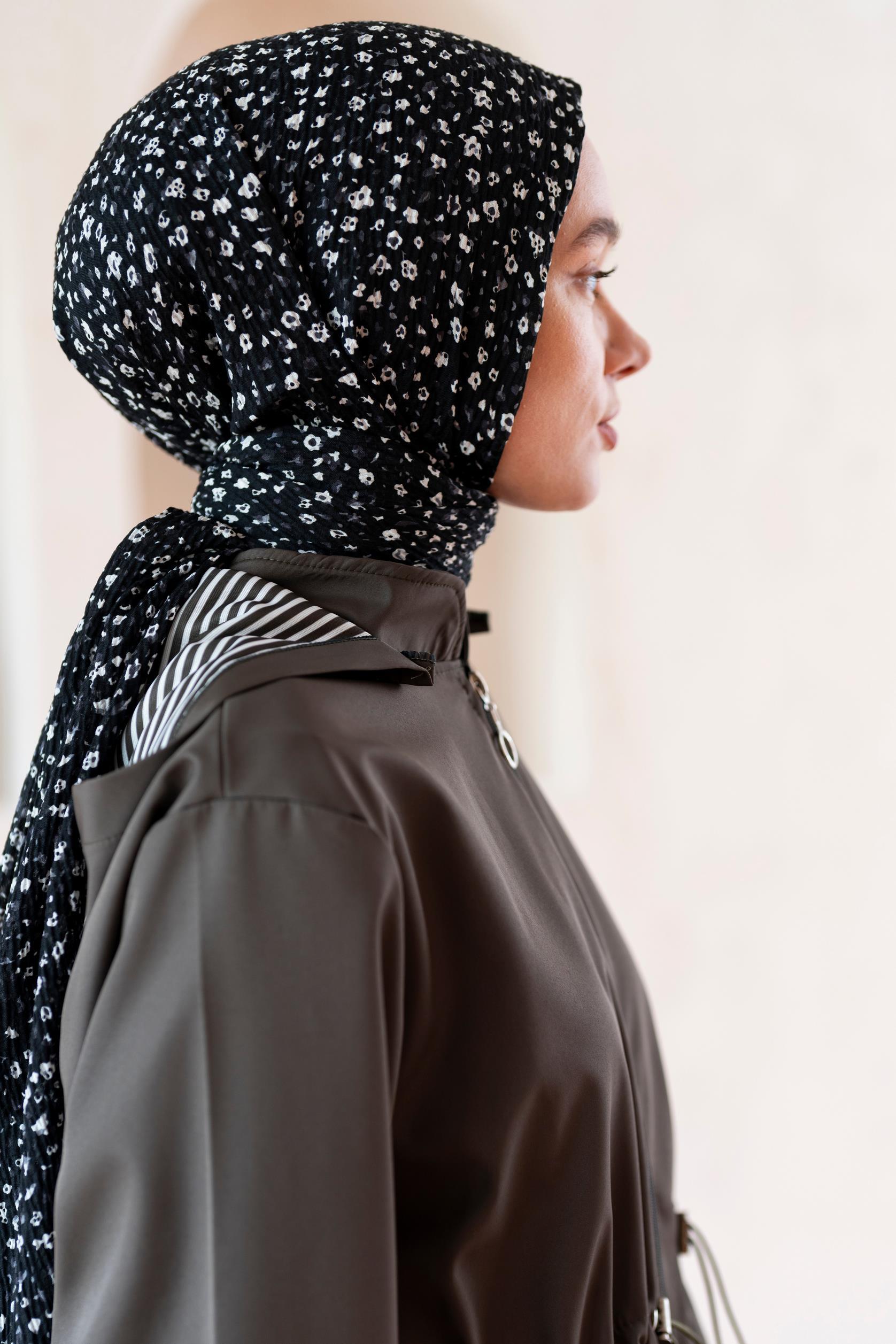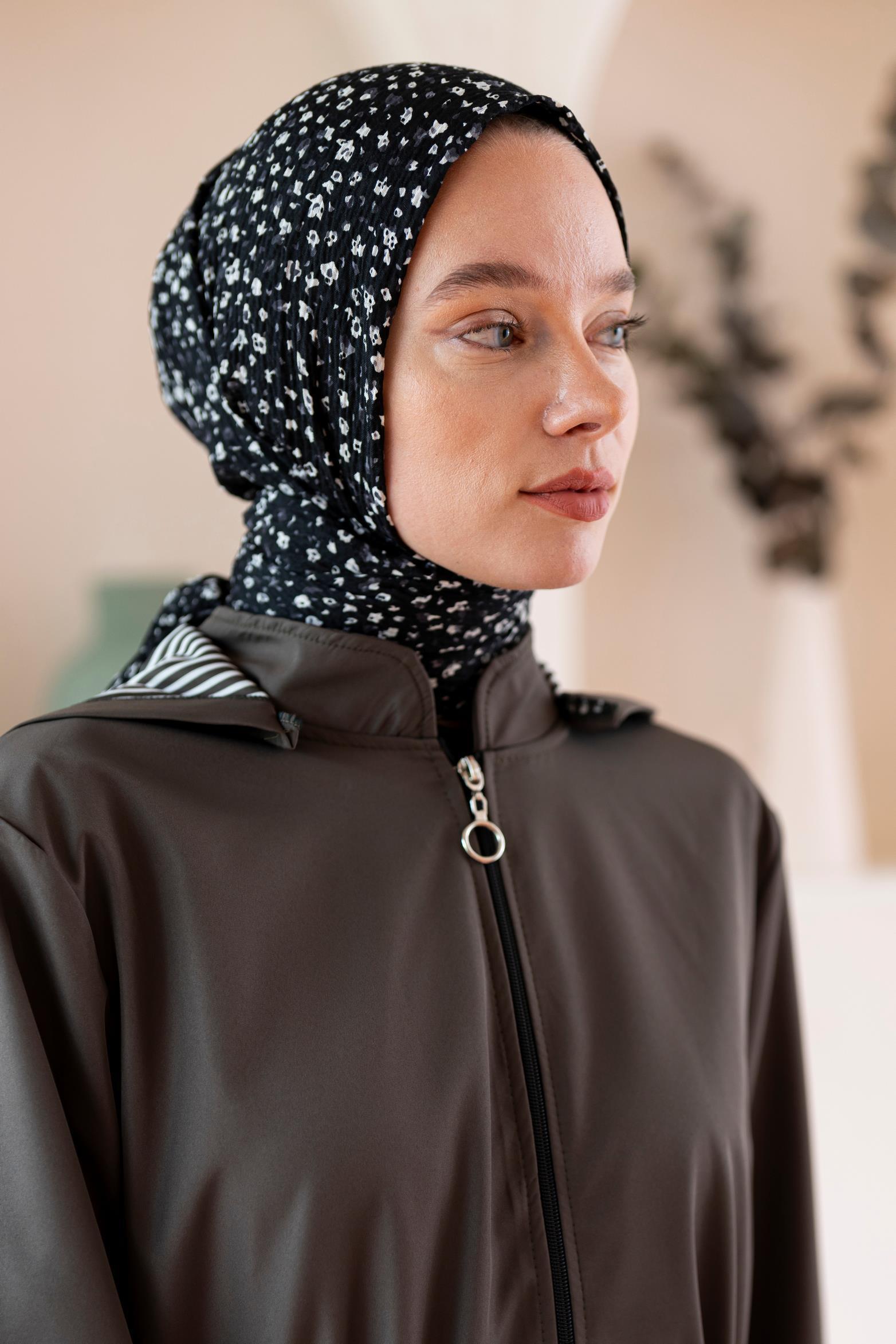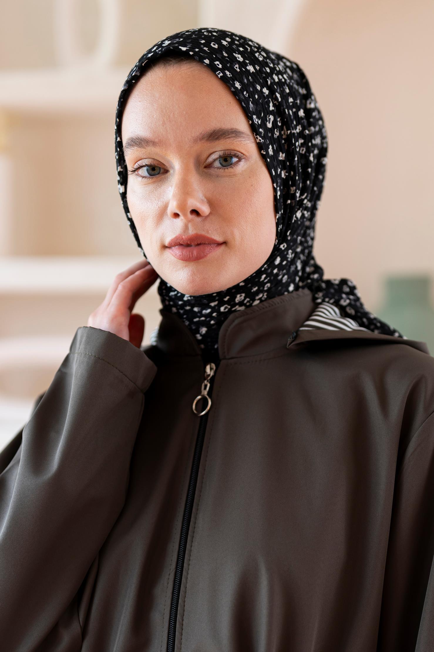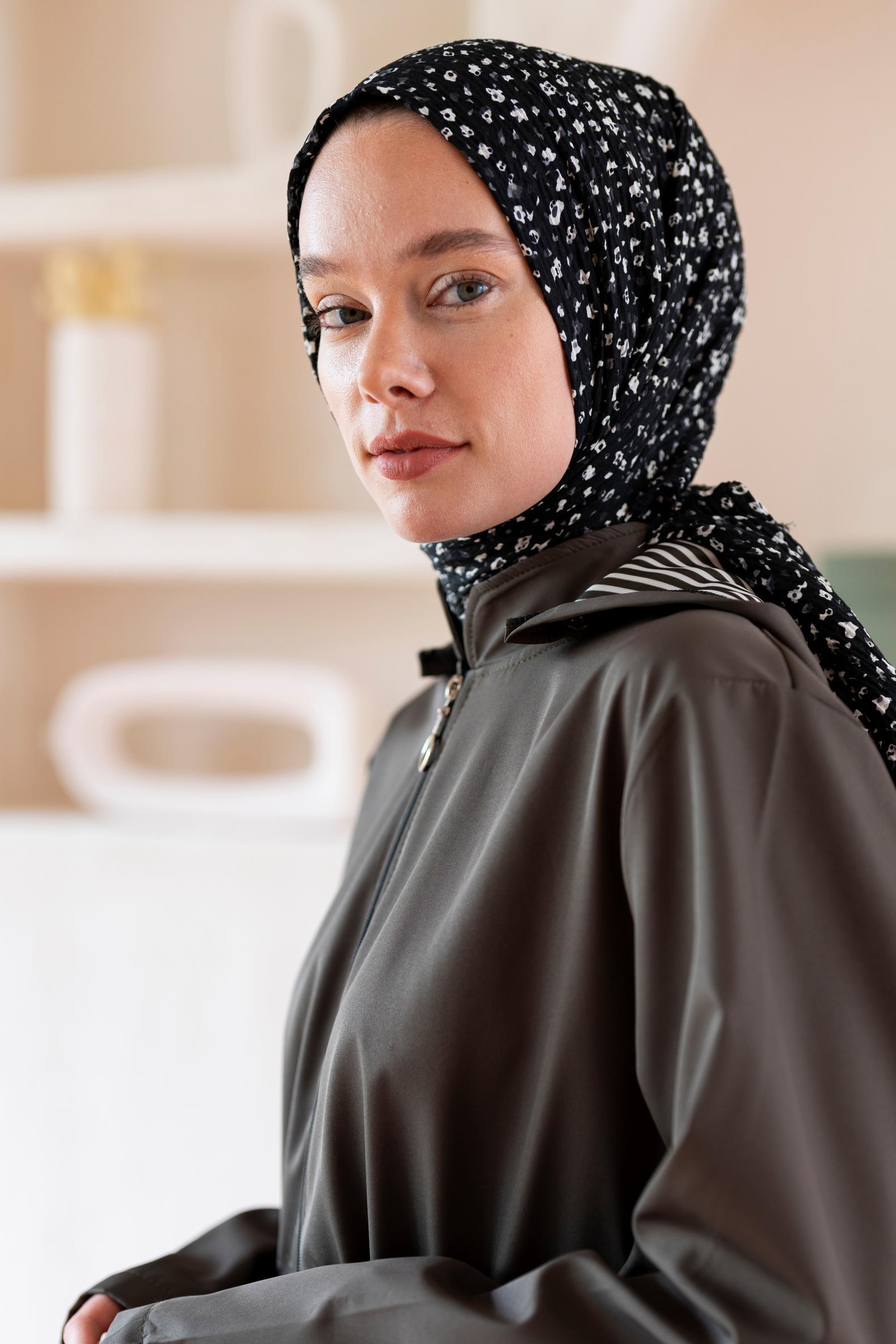 Kadın Ütü İstemeyen Çakıl Desen Bürümcük Şal 190*80 Cm SİYAH BEYAZ