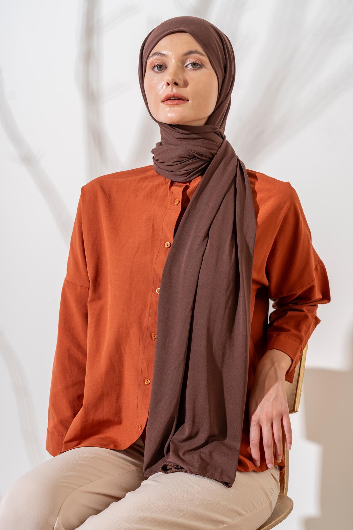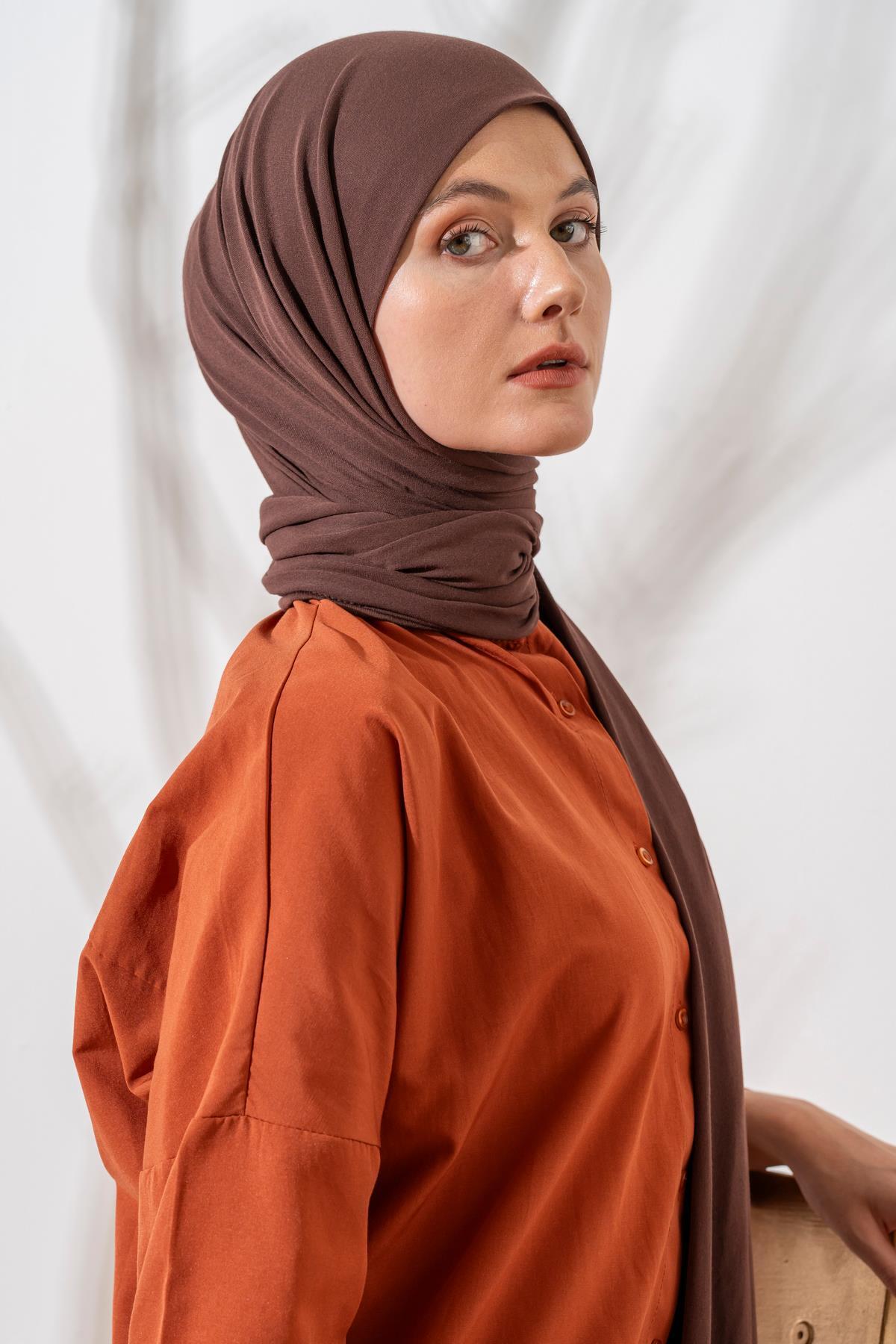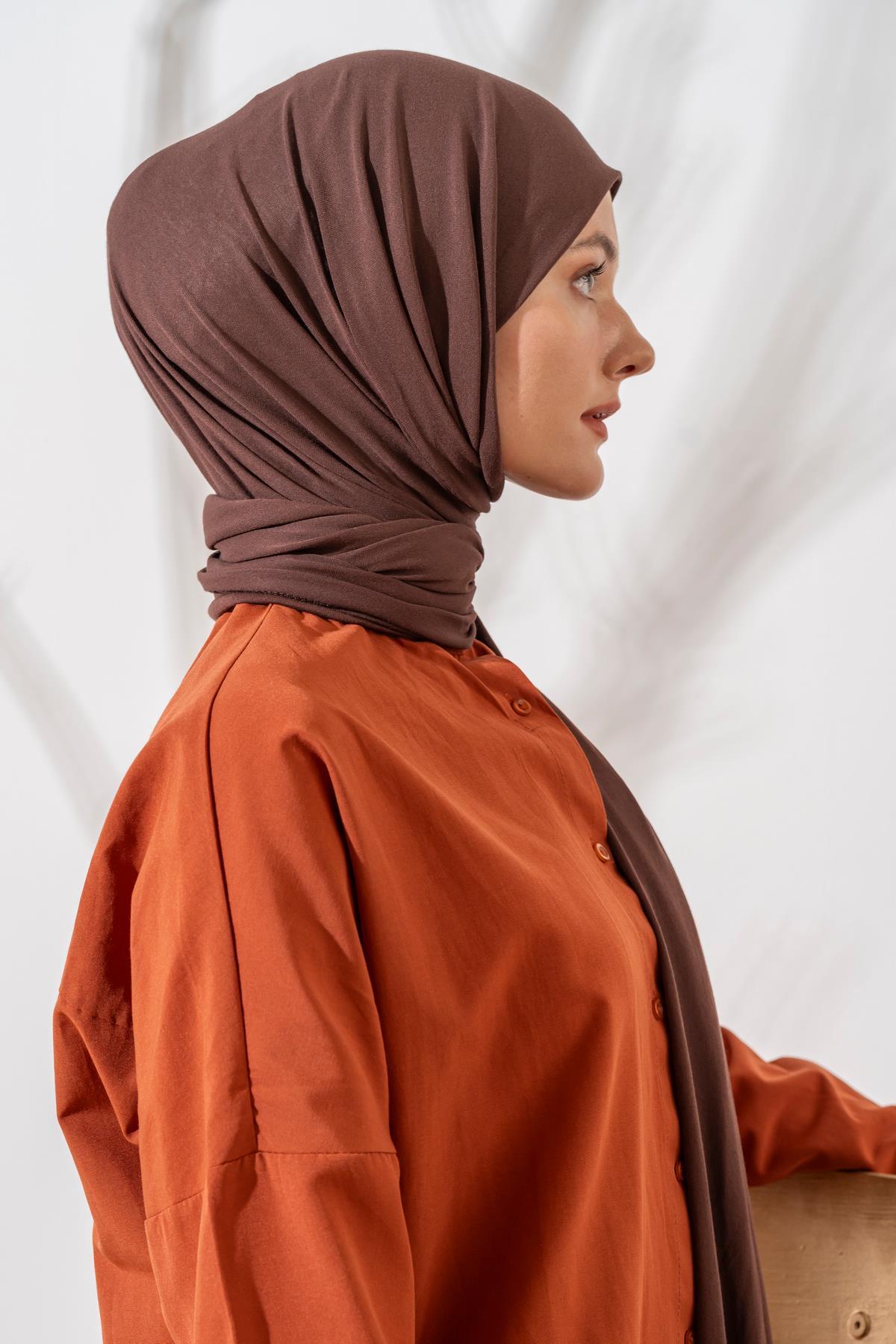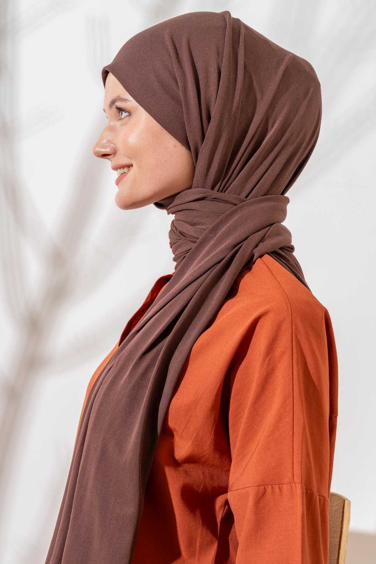 Kadın Tesettür Terletme Yapmayan İç Göstermez Penye Şal KOYU KAHVE