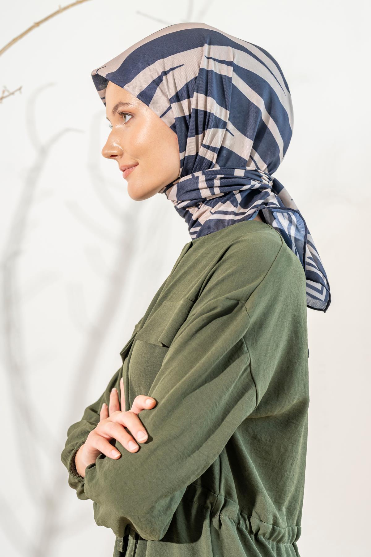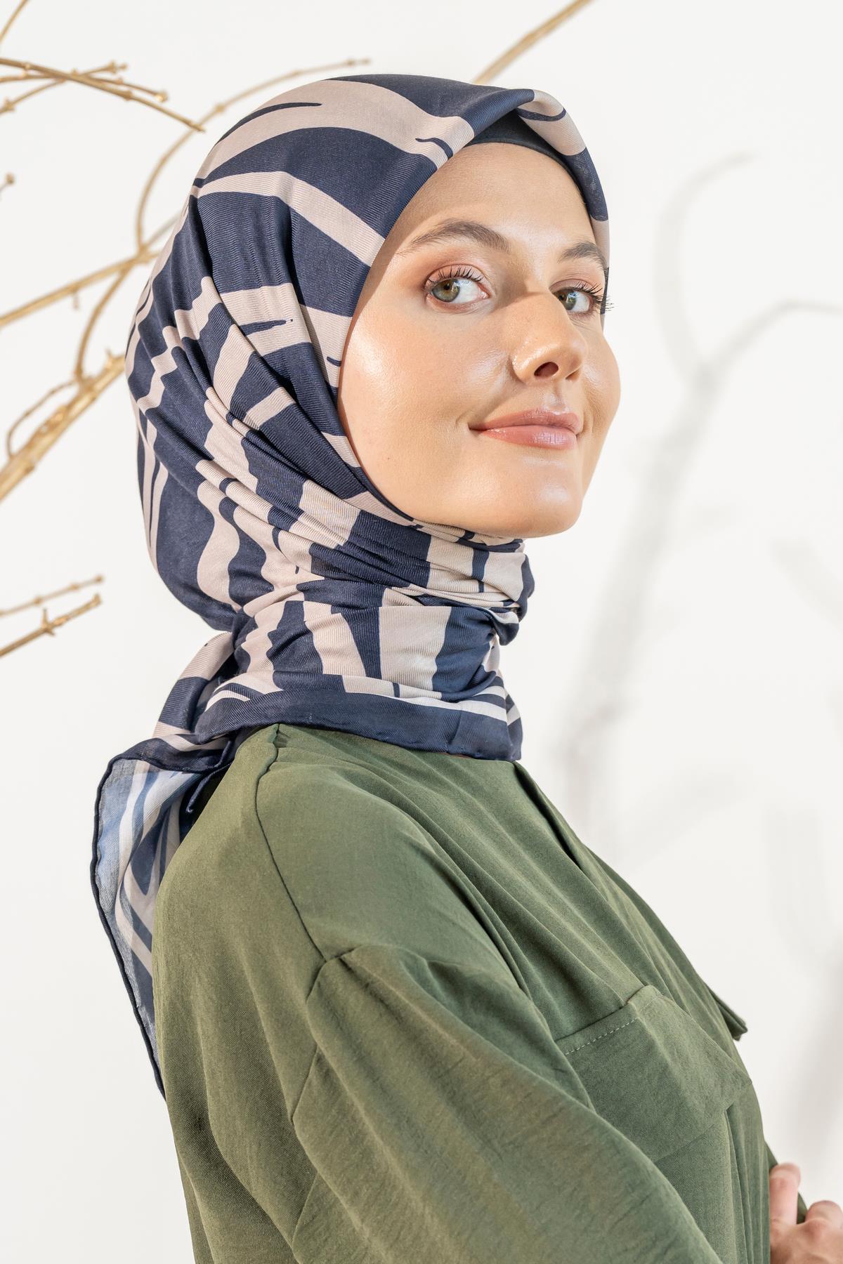 Kadın Zebra Desen Soft Eşarp LACİVERT KREM