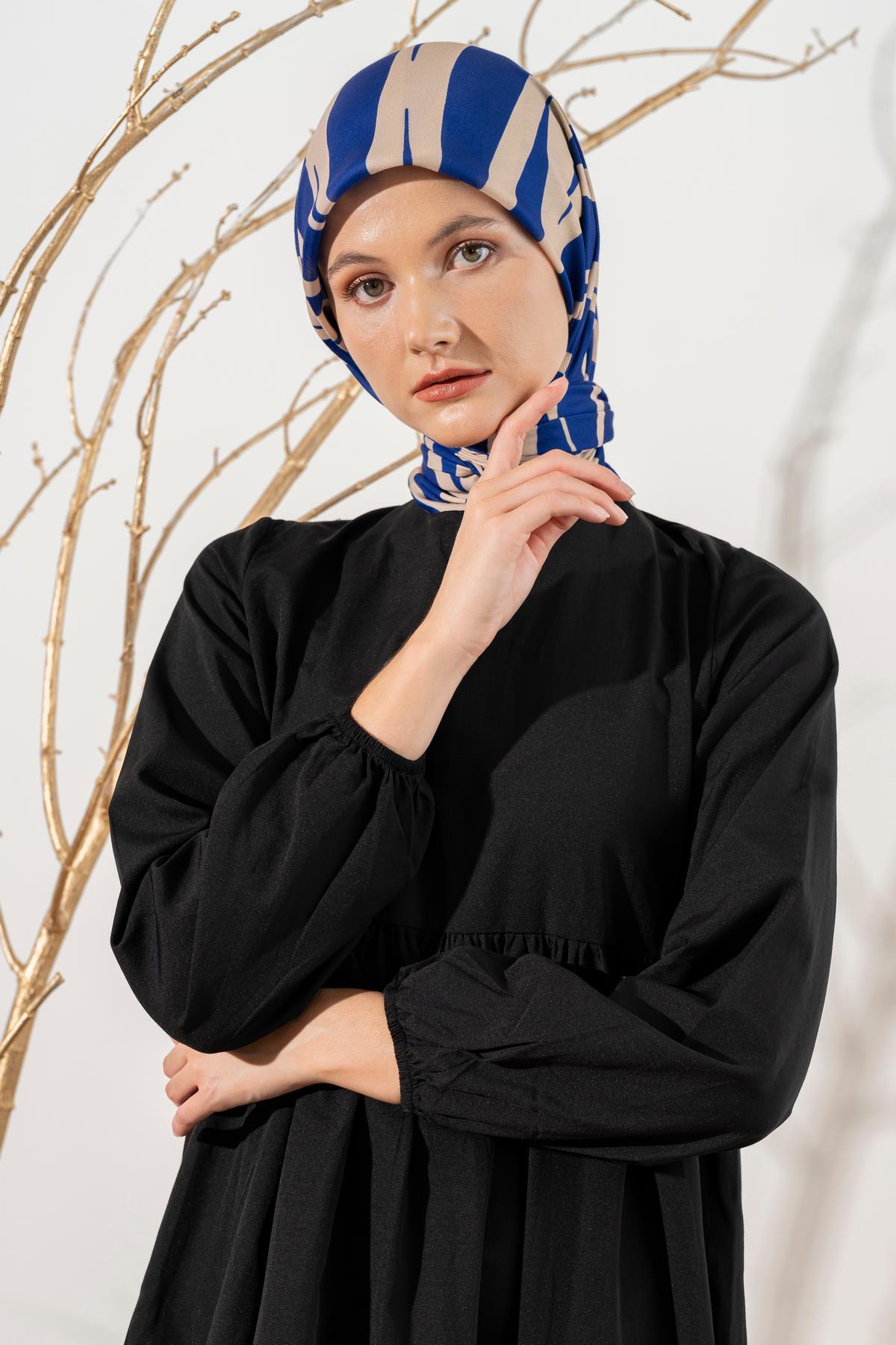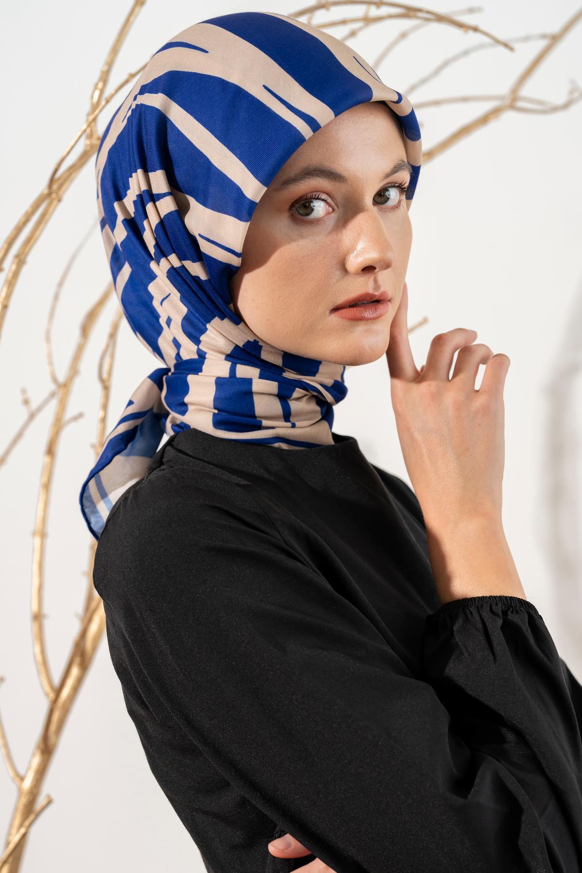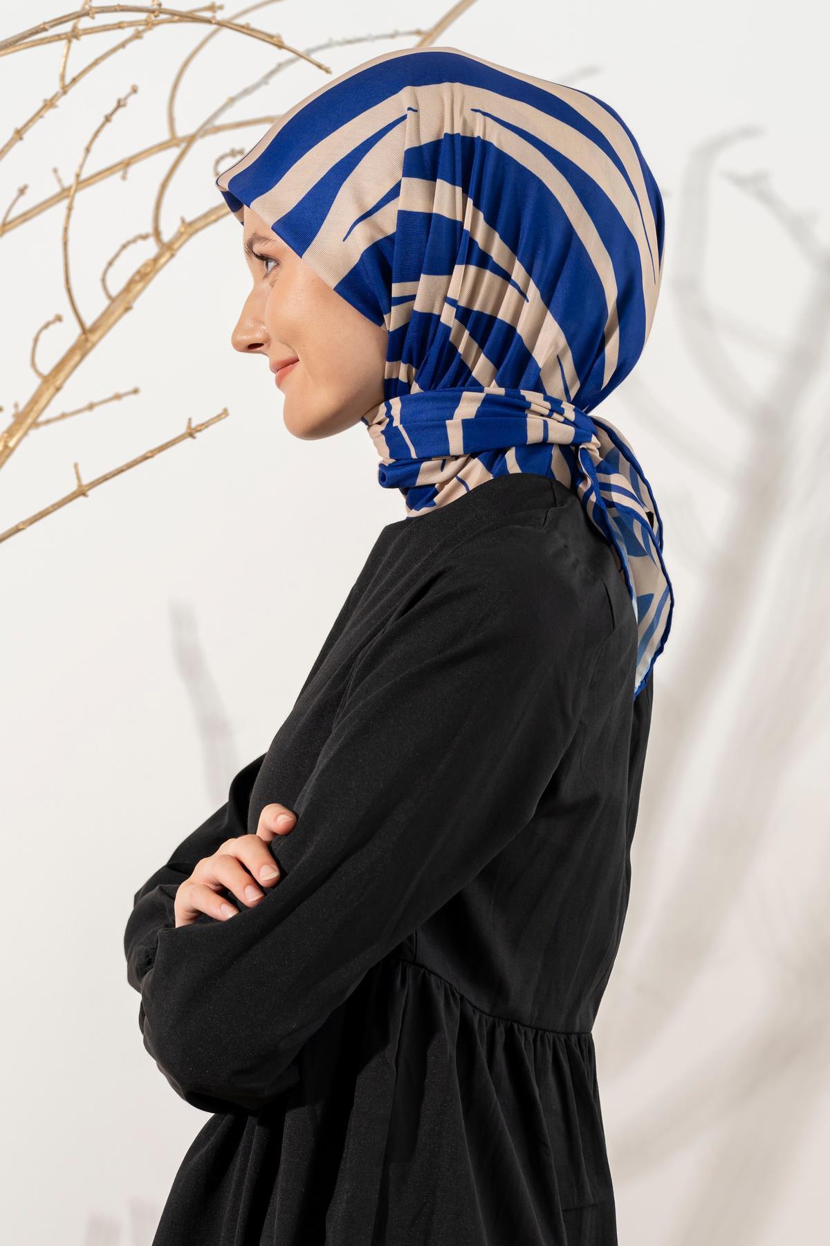 Kadın Zebra Desen Soft Eşarp LACİVERT KREM