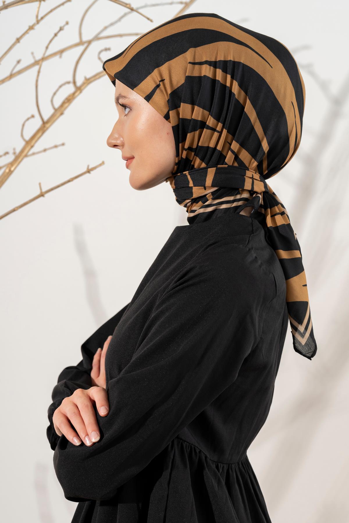 Kadın Zebra Desen Soft Eşarp SİYAH HARDAL