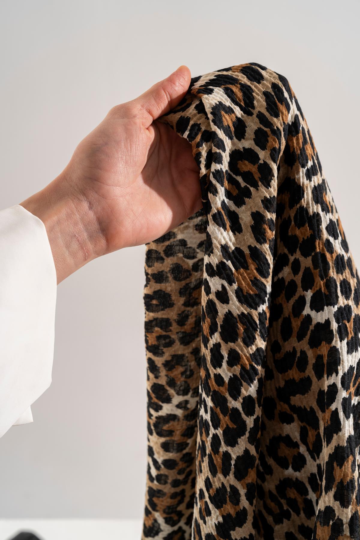 Kadın Leoparlı Bürümcük Eşarp SİYAH HARDAL