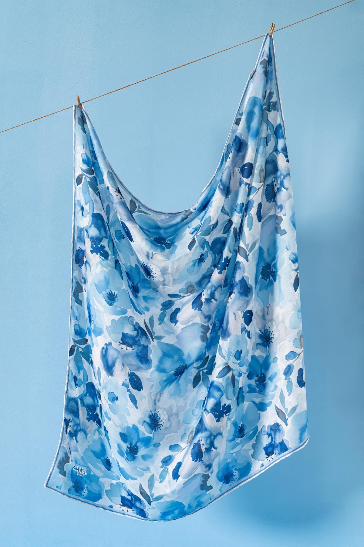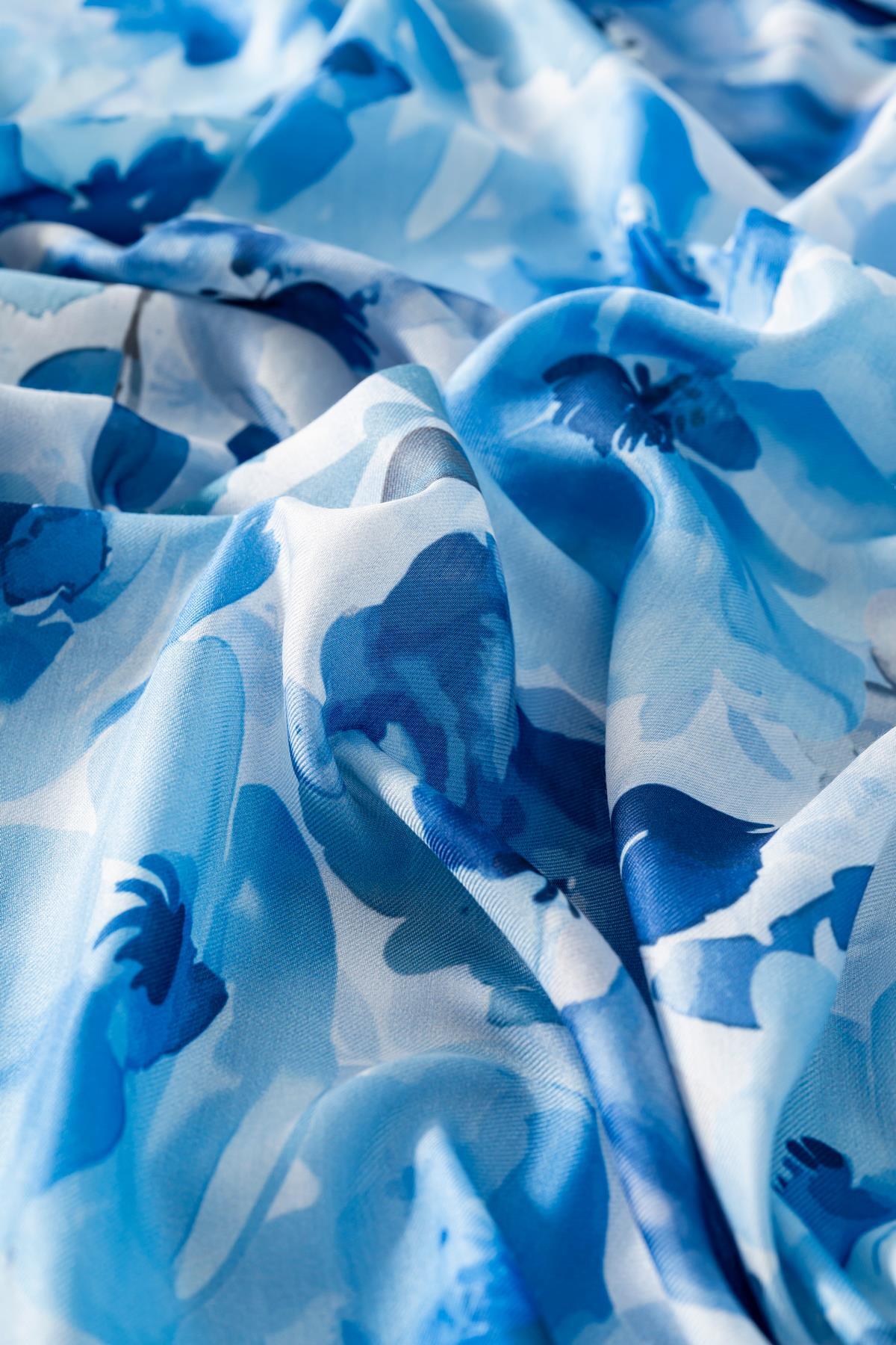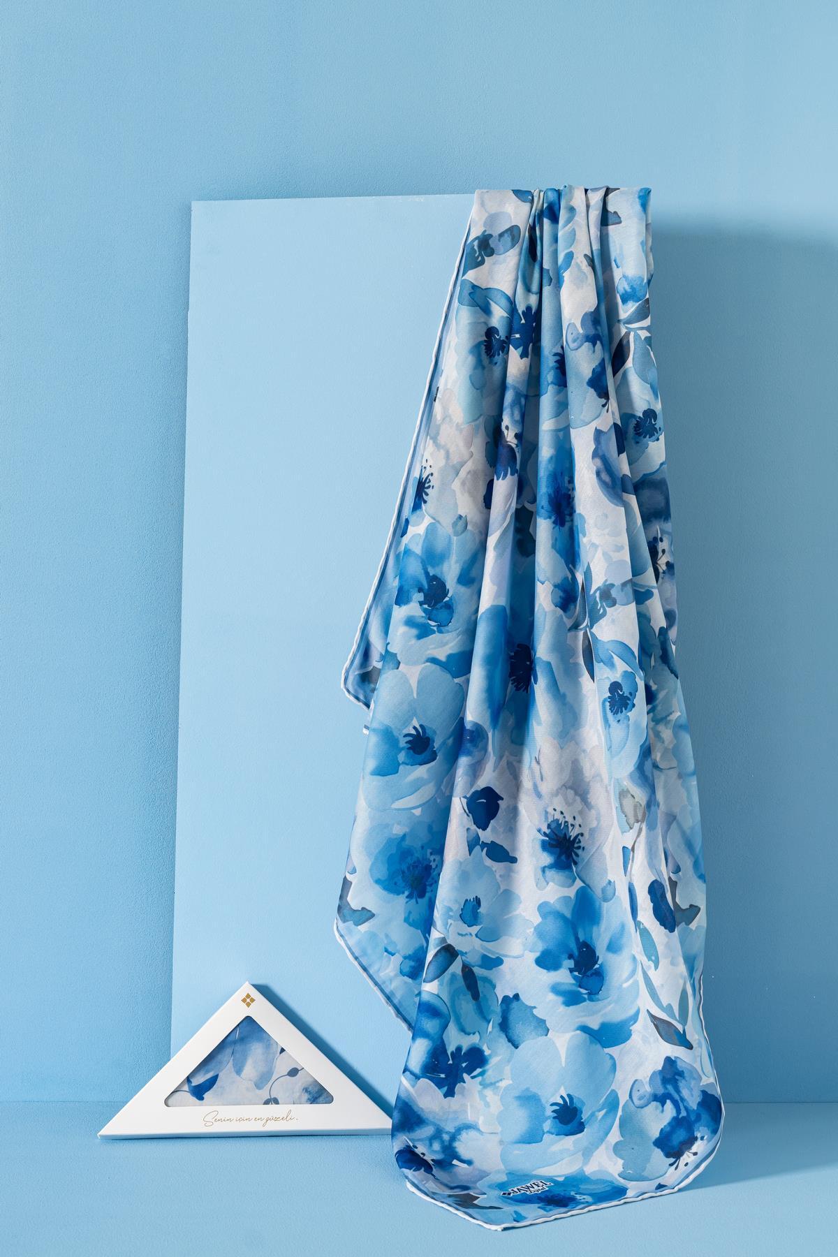 Kadın Desenli Peonia Soft Eşarp İNDİGO