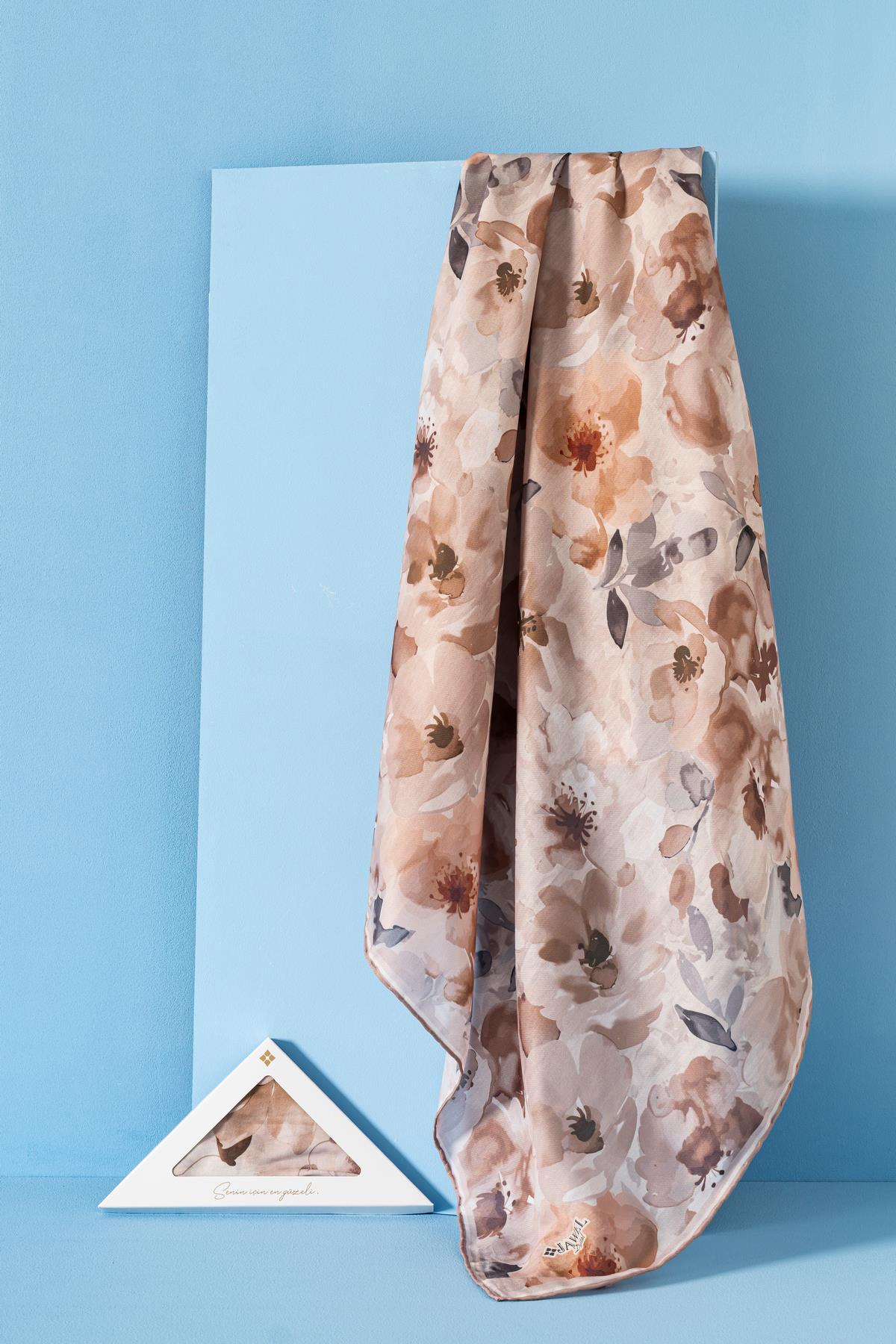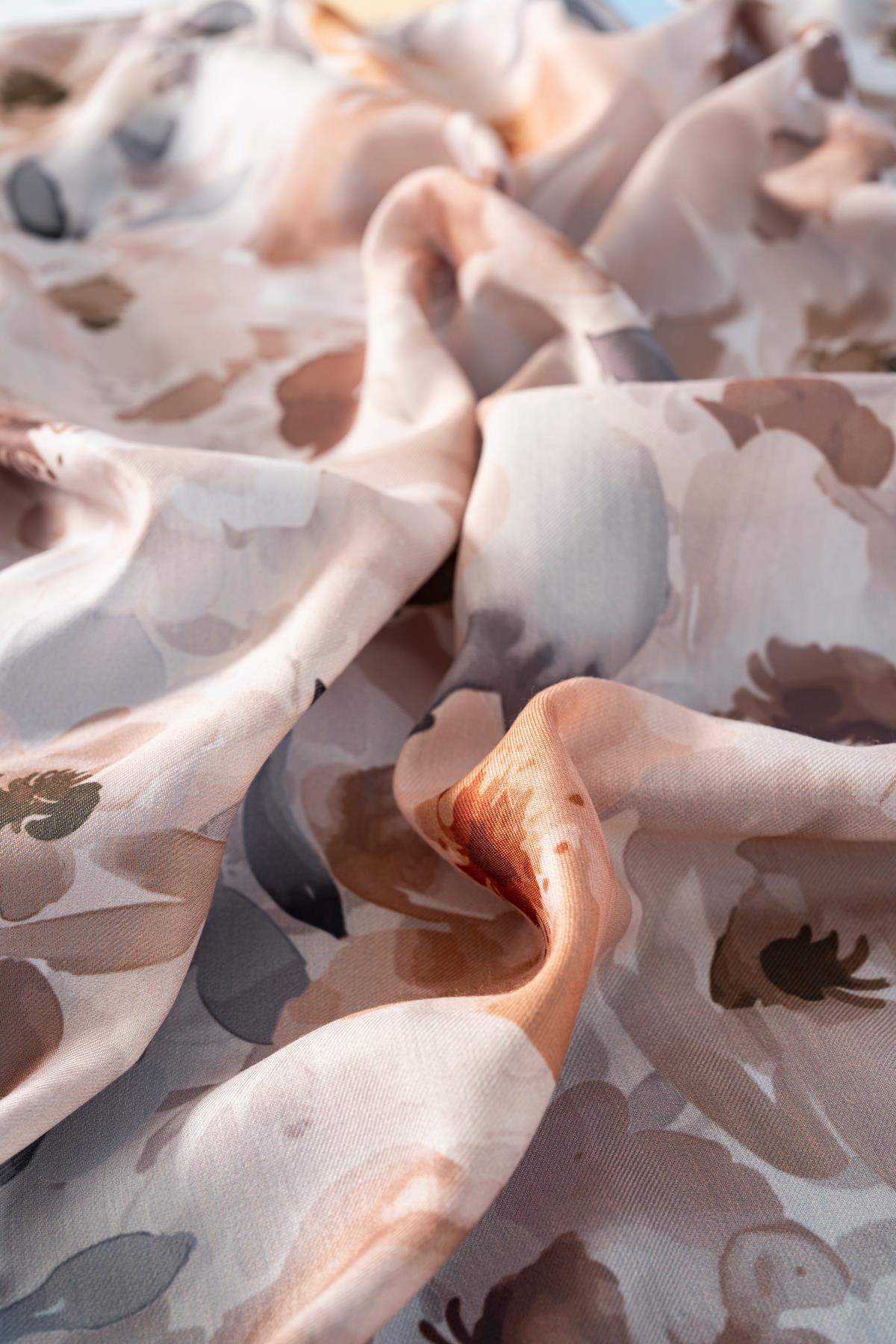 Kadın Desenli Peonia Soft Eşarp VİZON