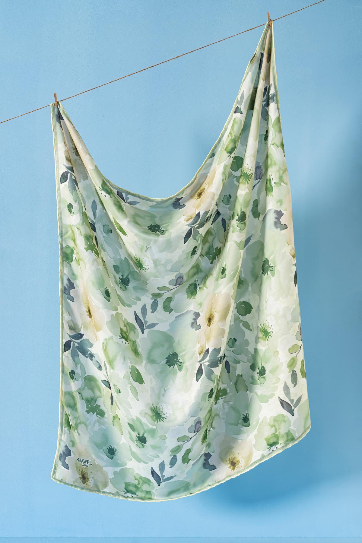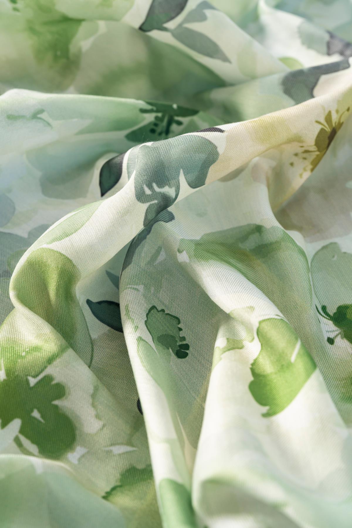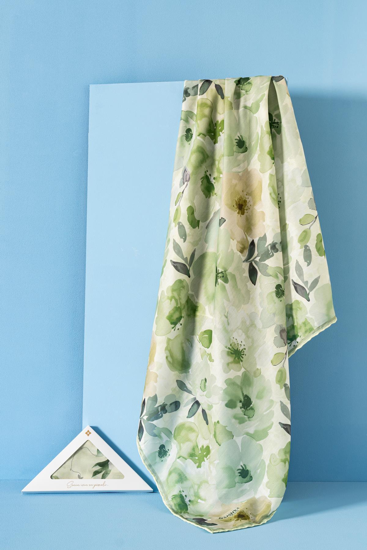 Kadın Desenli Peonia Soft Eşarp YEŞİL