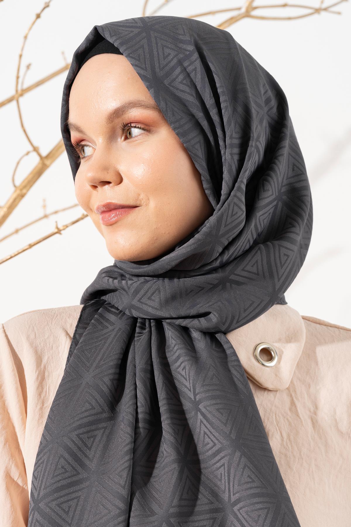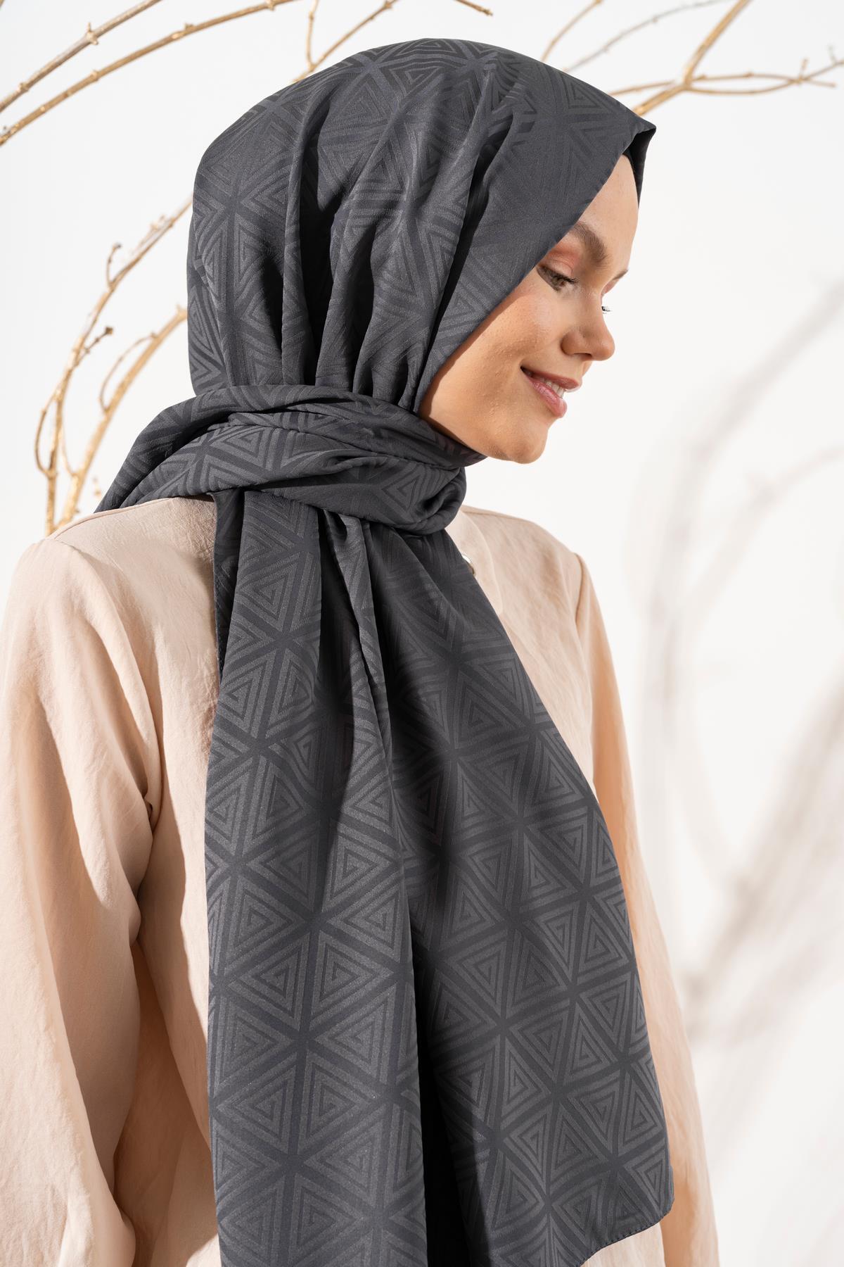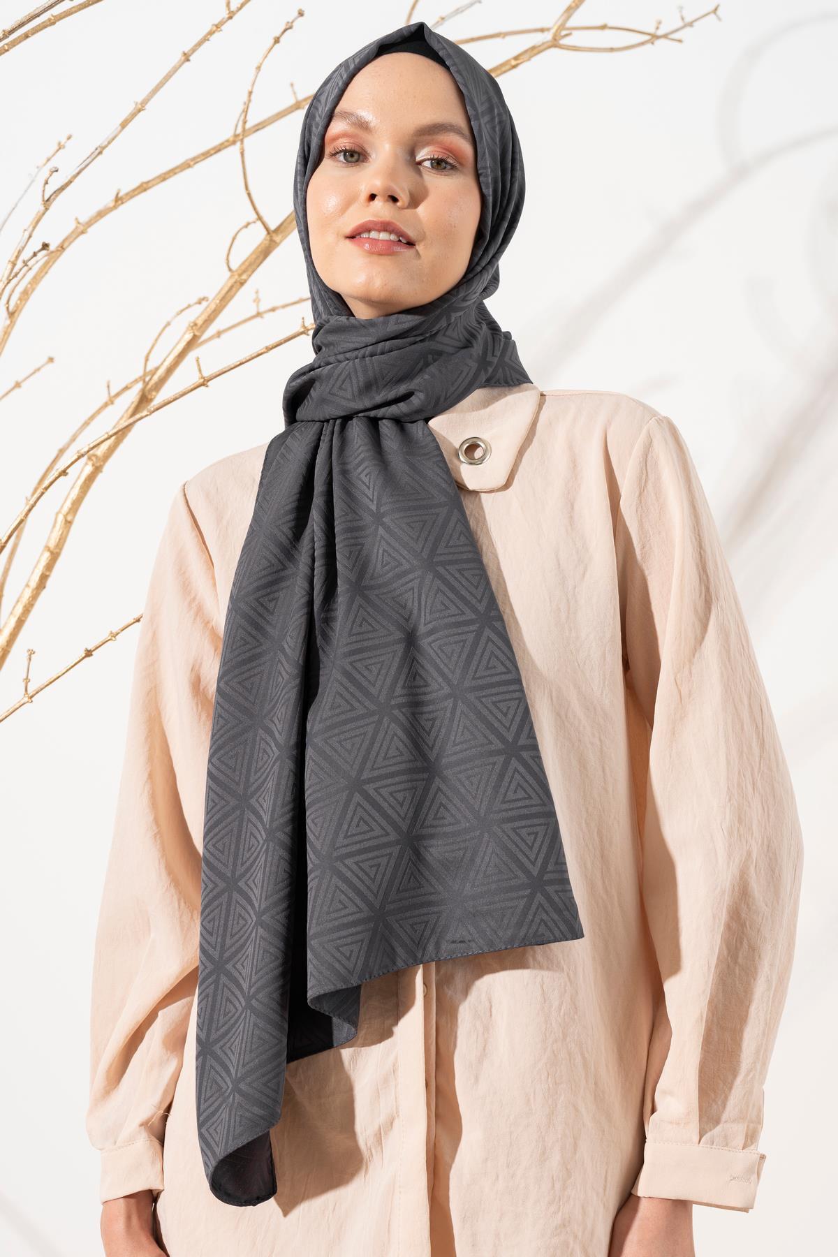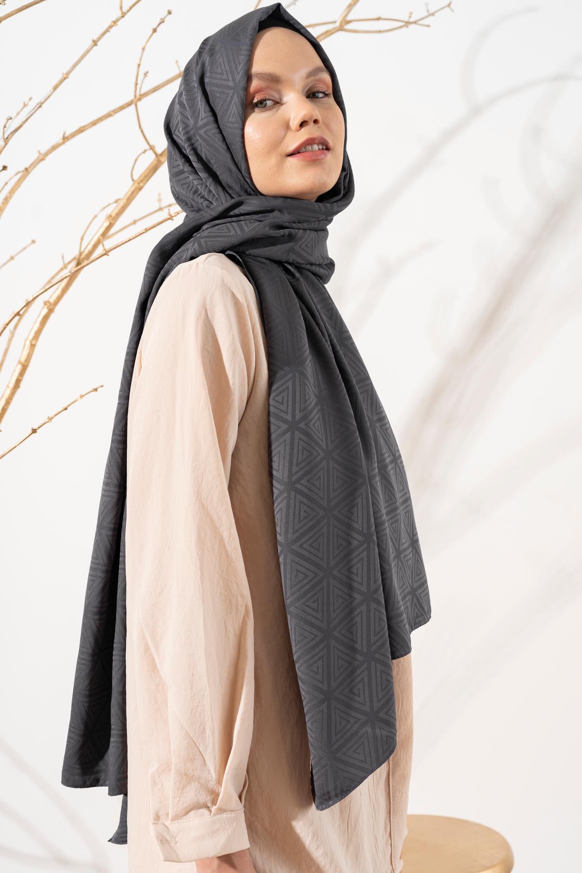 Kadın Piramit Desenli Jakarlı Şal ANTRASİT