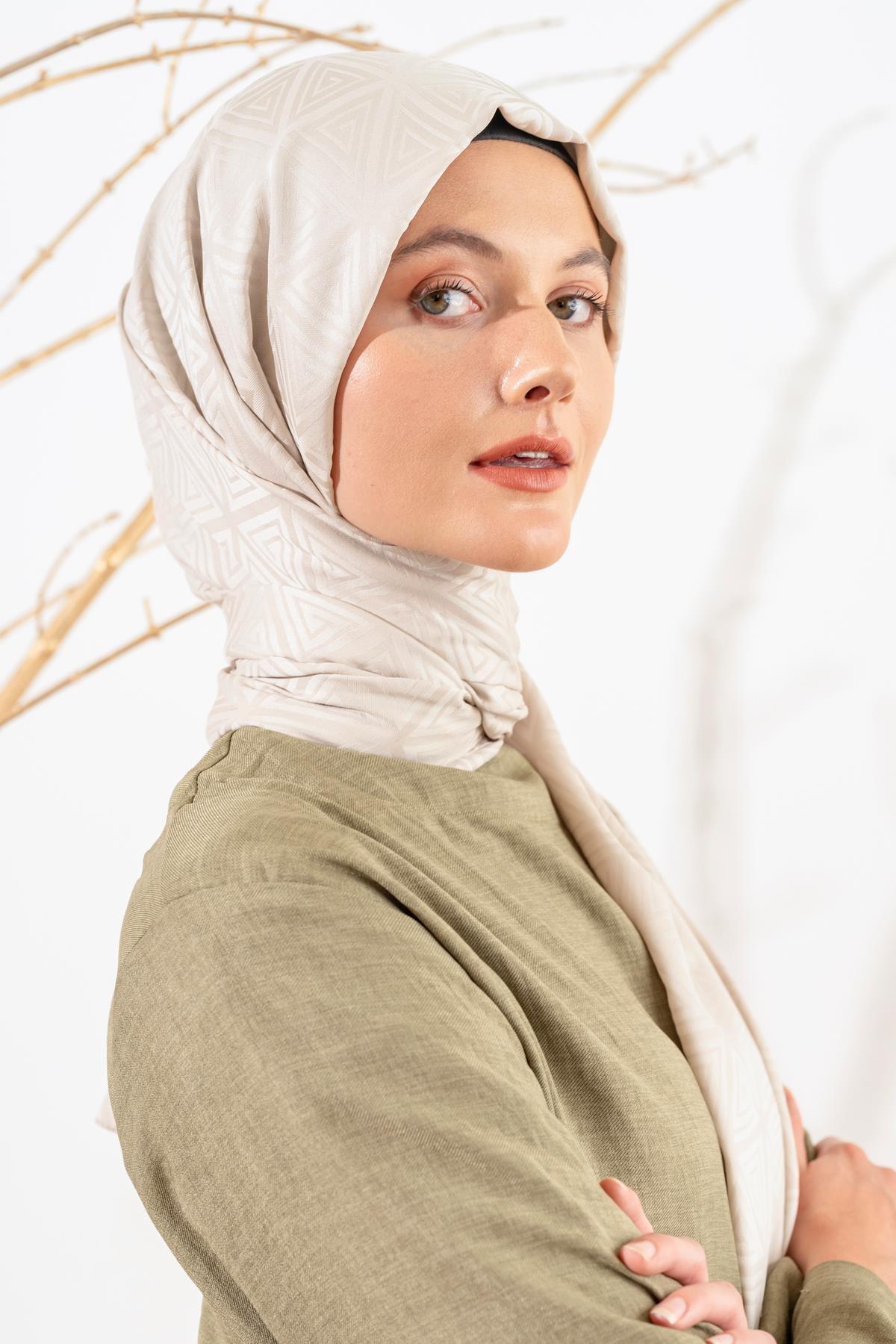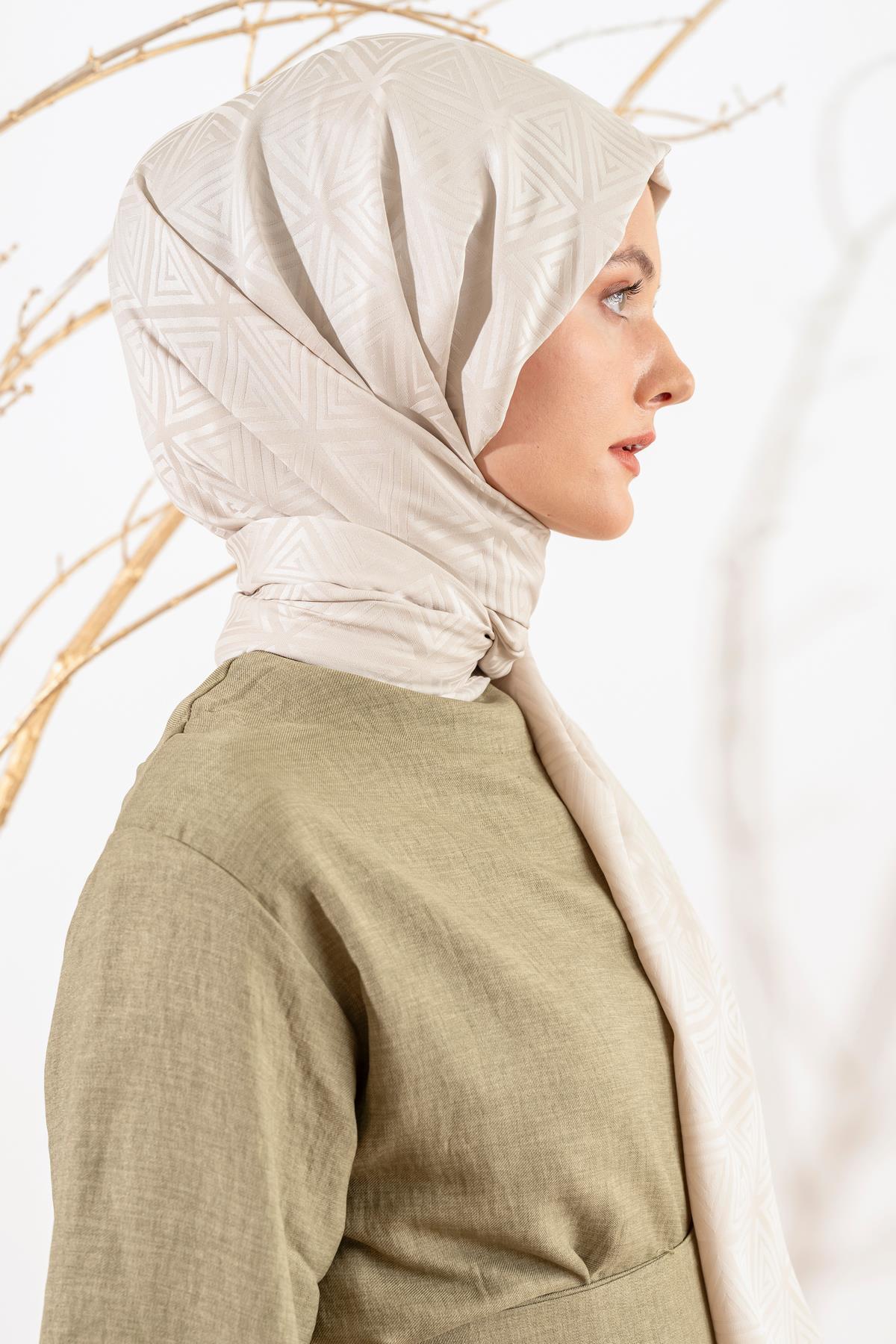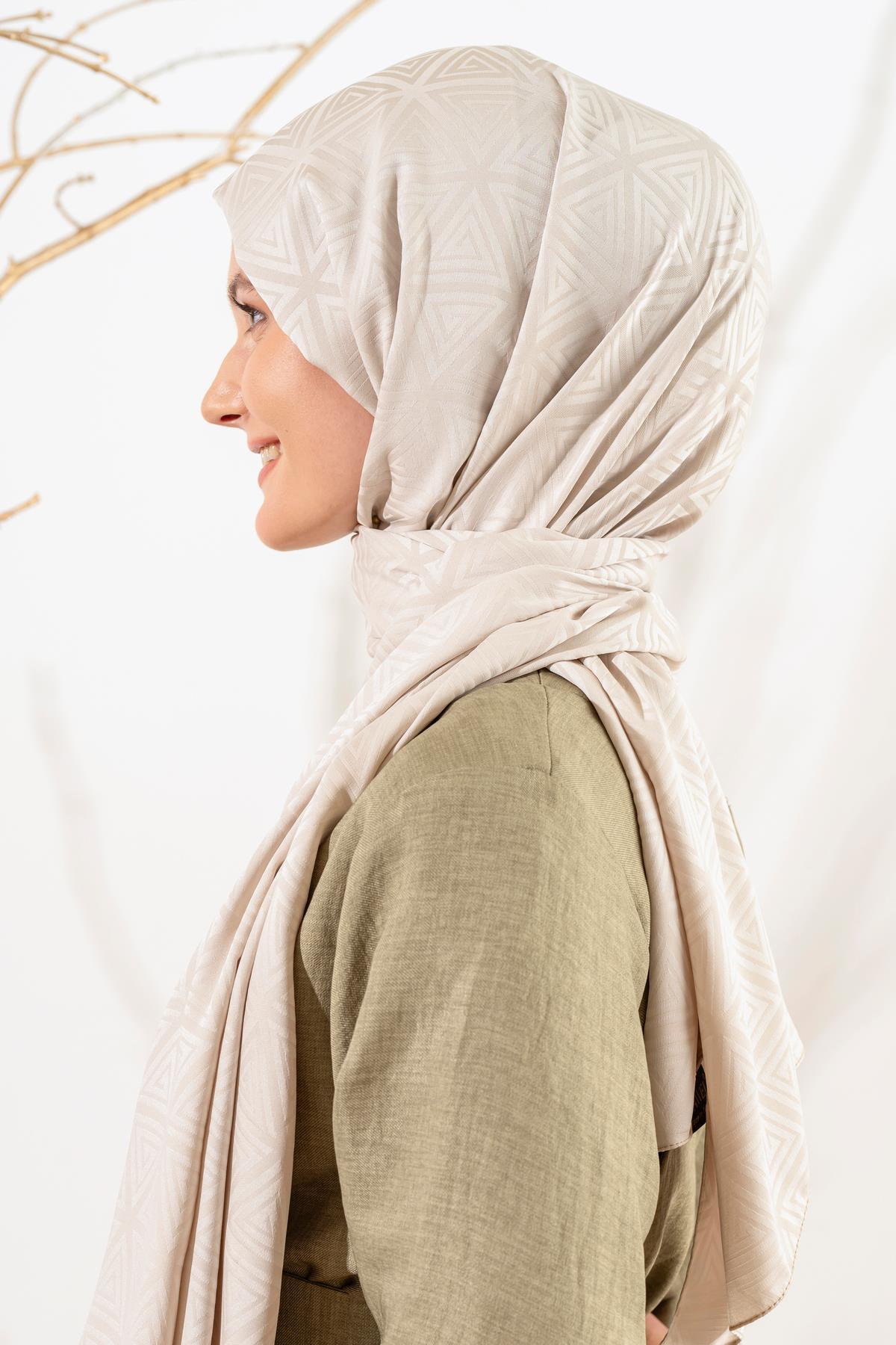 Kadın Piramit Desenli Jakarlı Şal BEJ