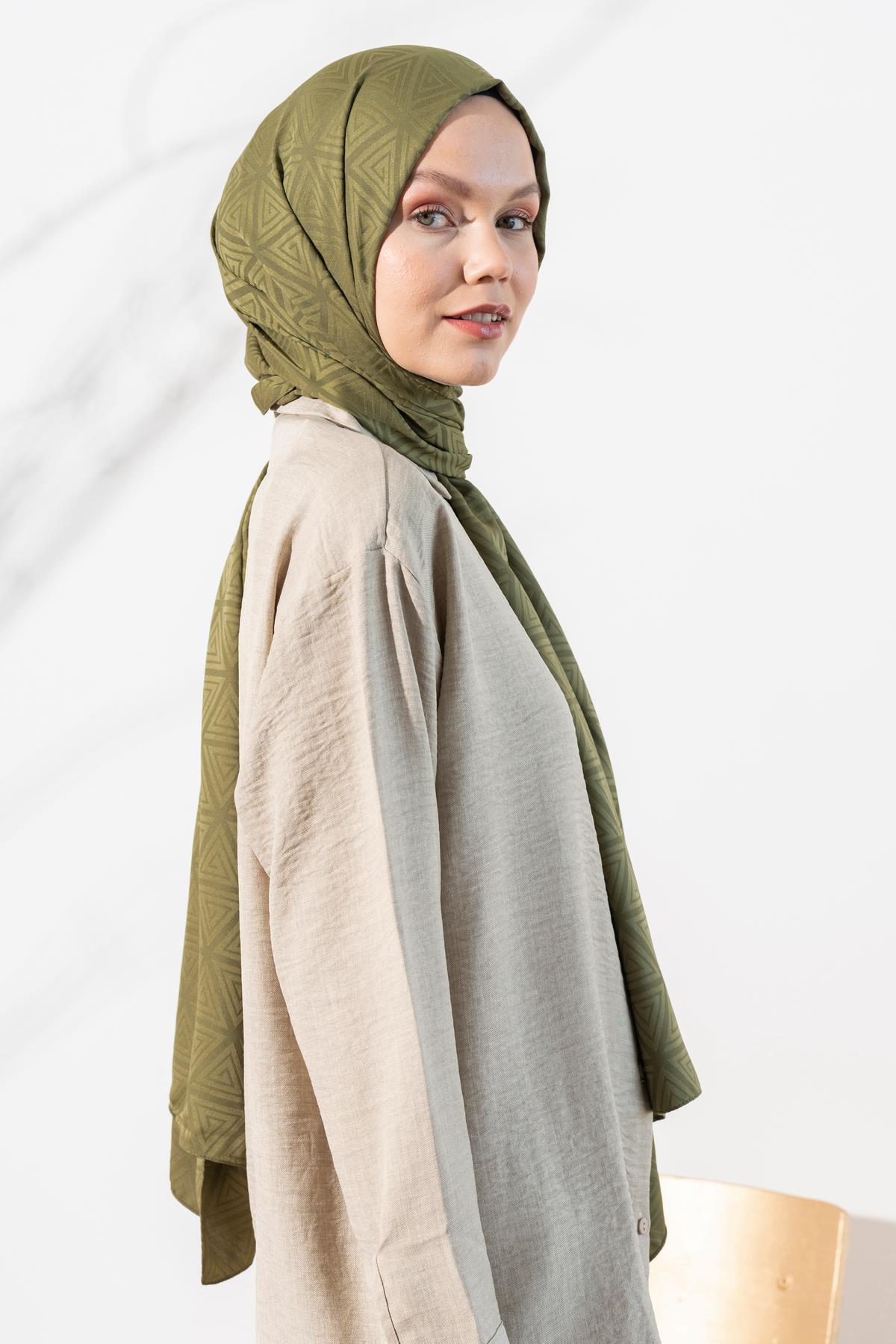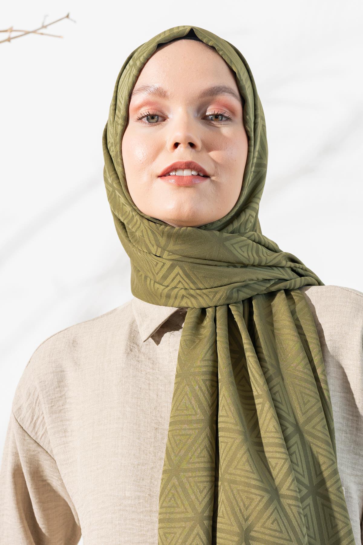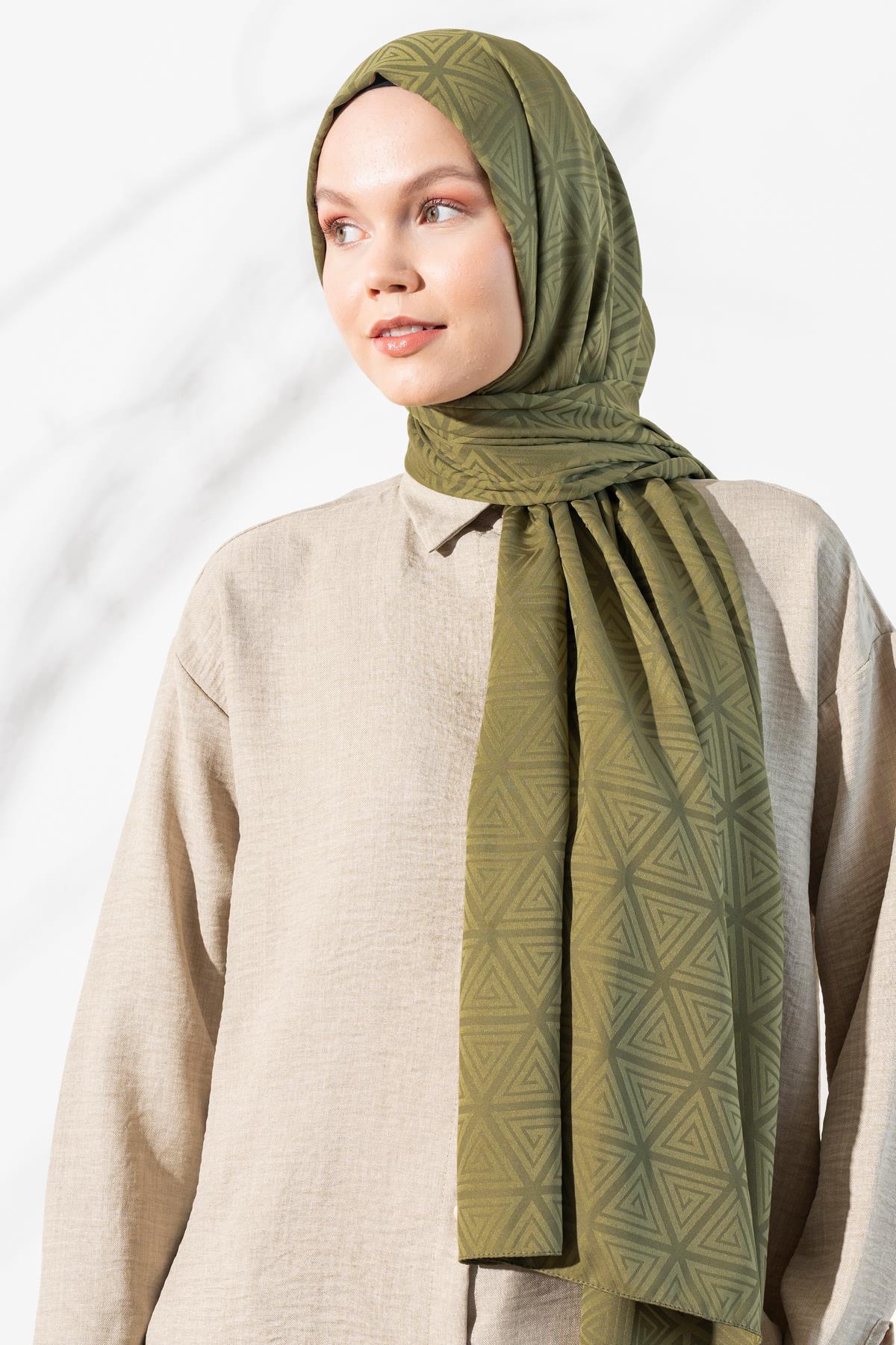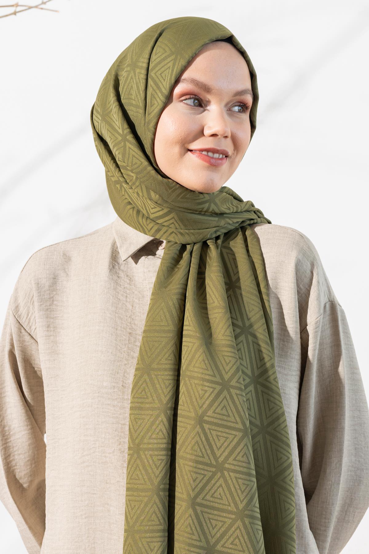 Kadın Piramit Desenli Jakarlı Şal HAKİ