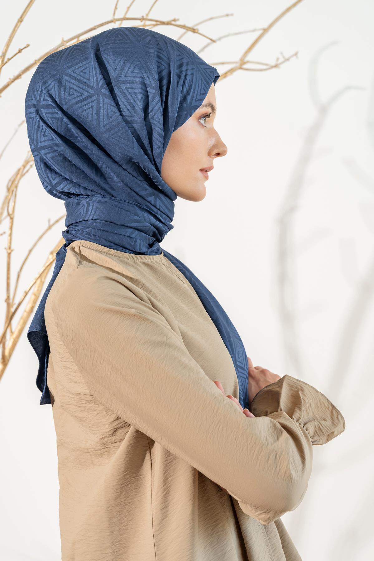 Kadın Piramit Desenli Jakarlı Şal KOYU İNDİGO
