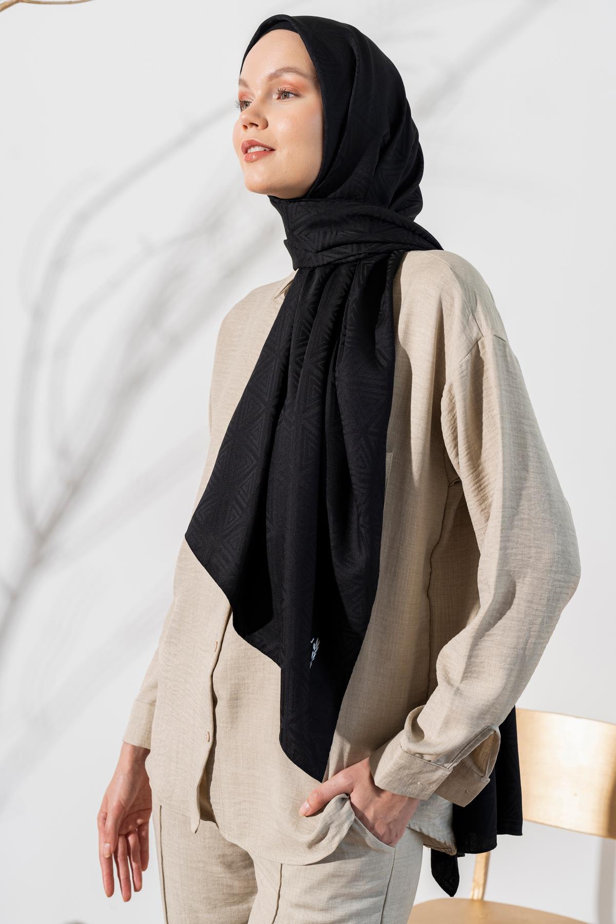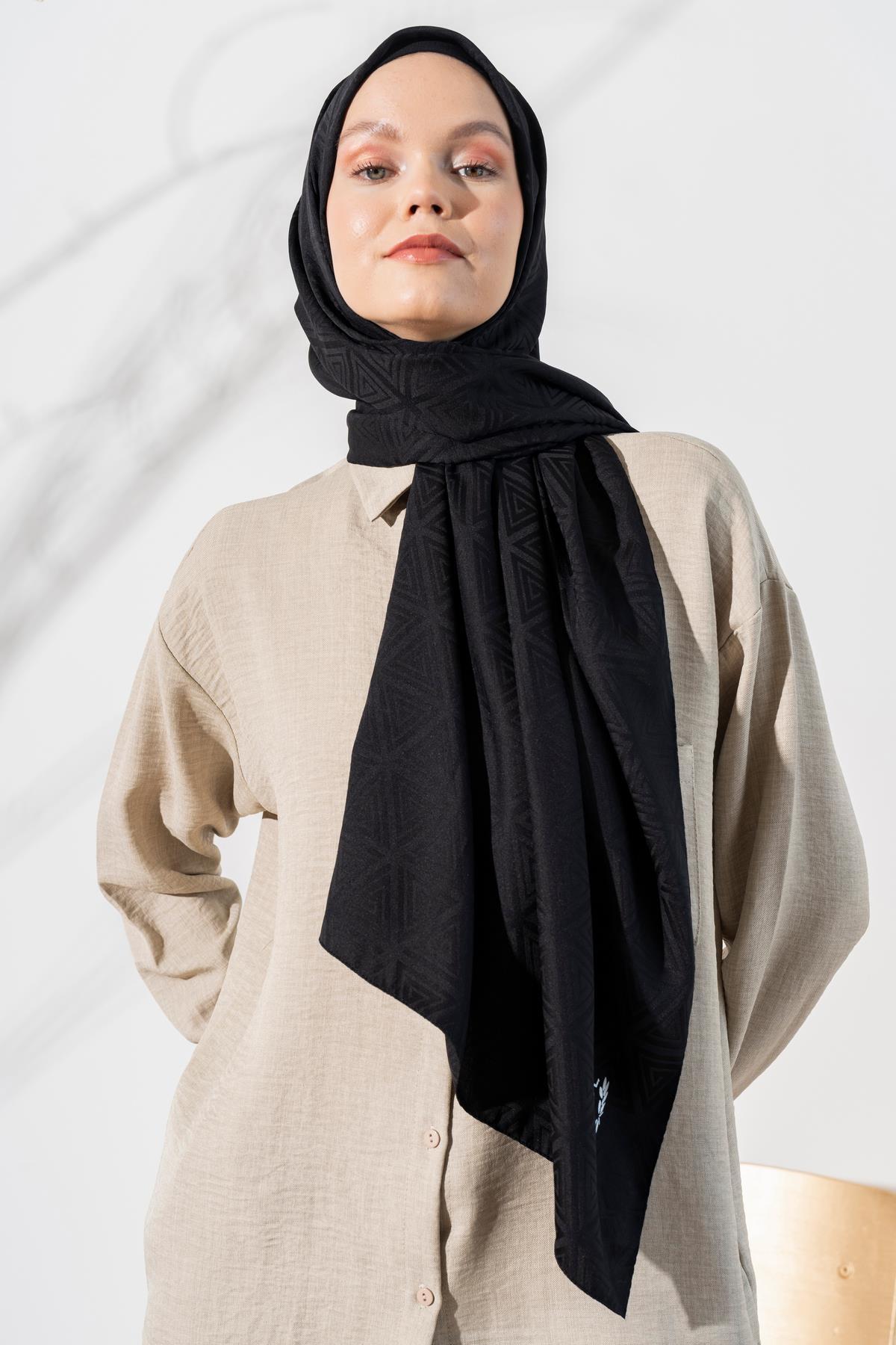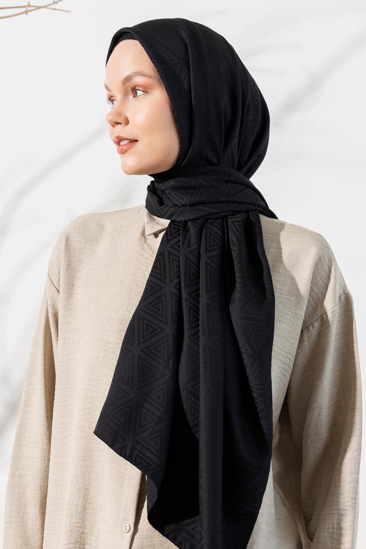 Kadın Piramit Desenli Jakarlı Şal SİYAH