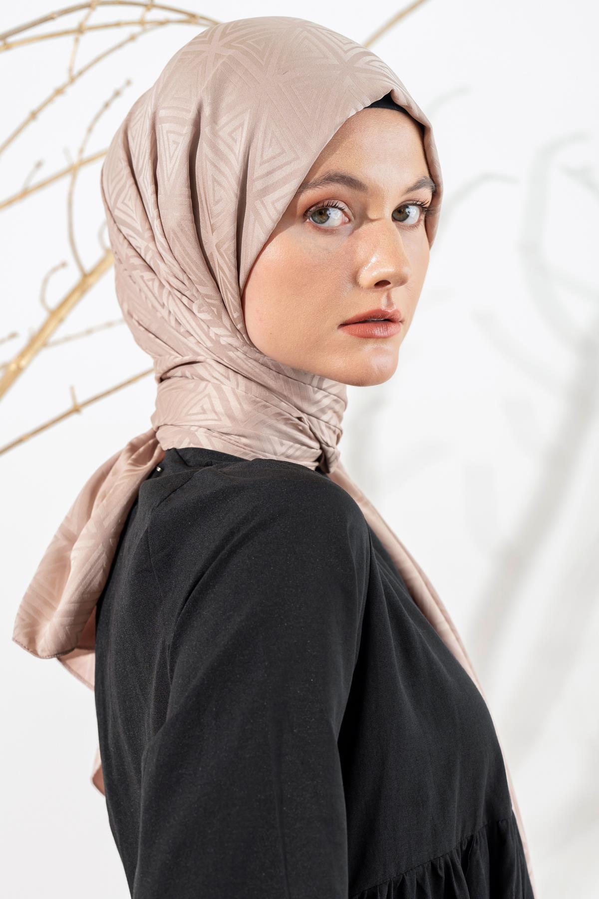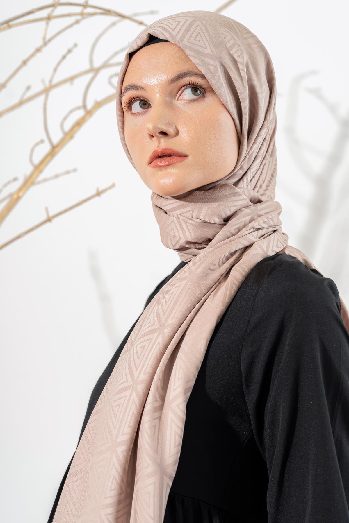 Kadın Piramit Desenli Jakarlı Şal SÜTLÜ KAHVE