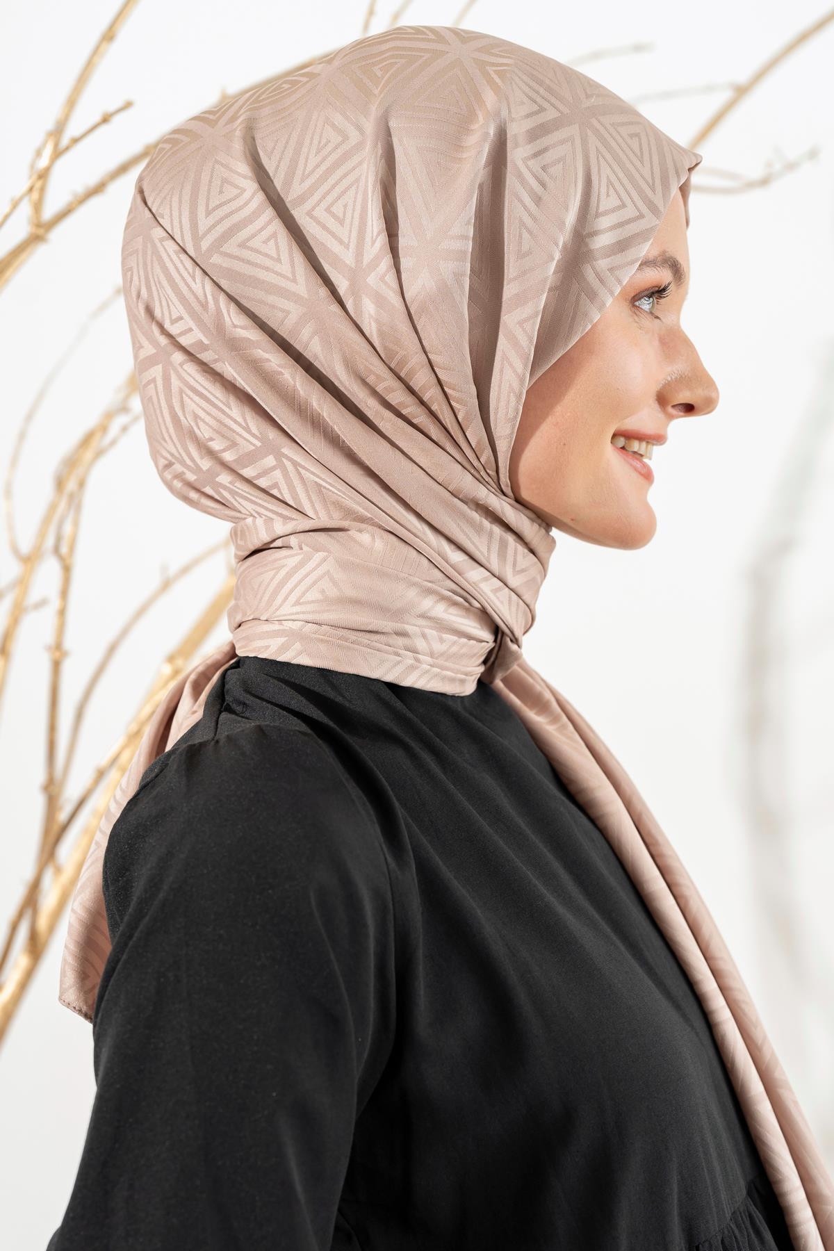 Kadın Piramit Desenli Jakarlı Şal BEJ