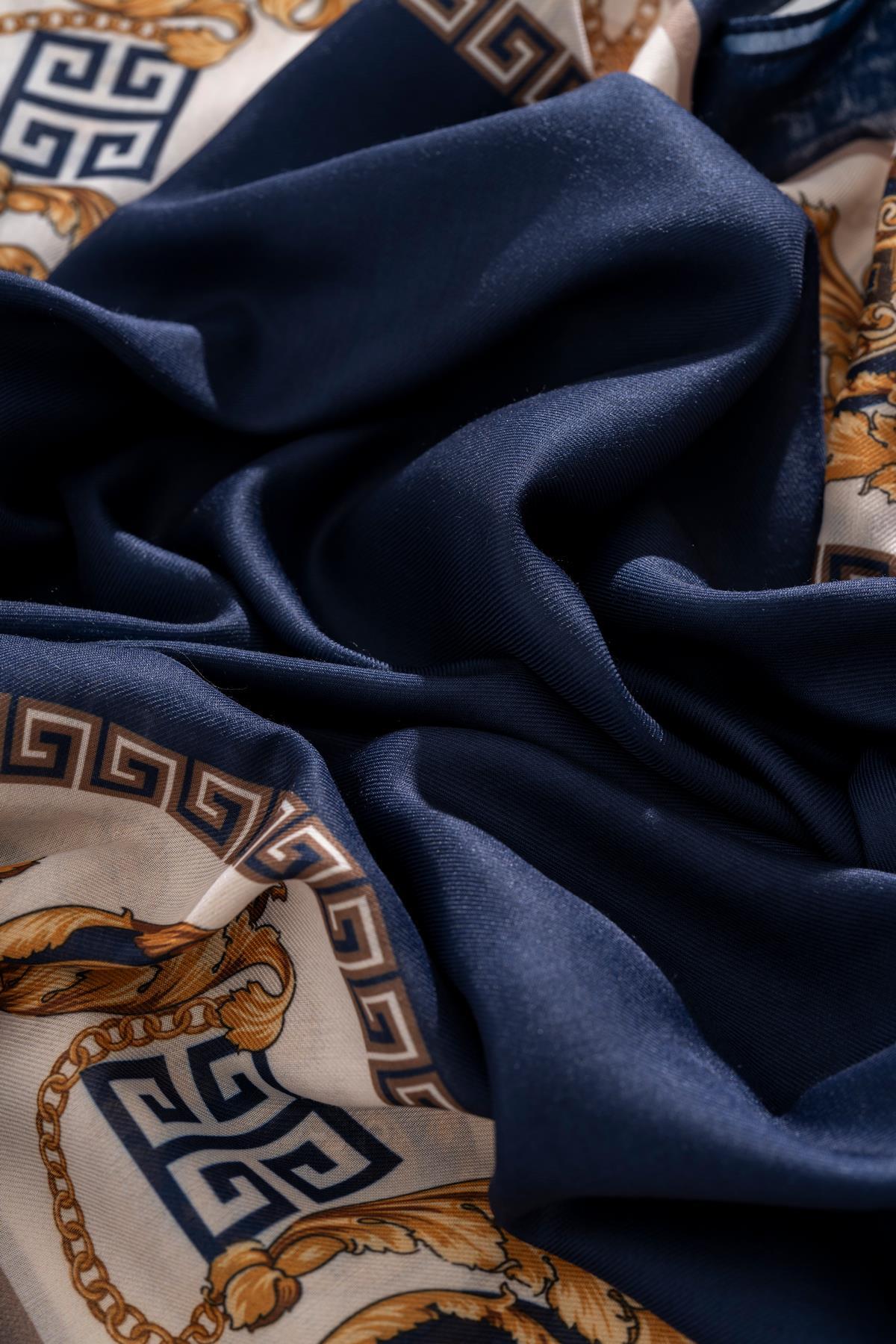 Kadın Etnik Desen Soft Şal Alasya LACİVERT