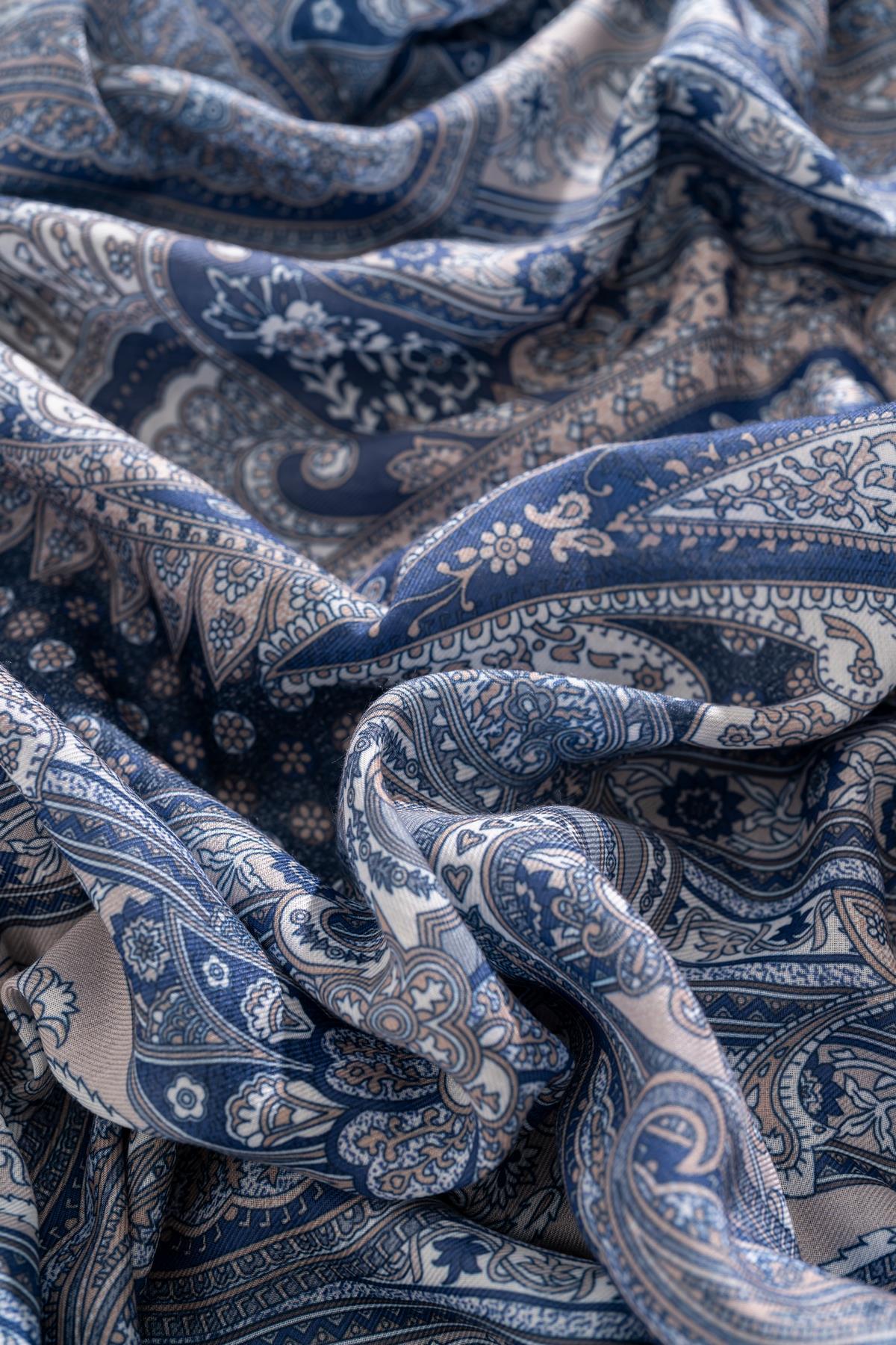 Kadın Etnik Desen Soft Şal Adessa İNDİGO
