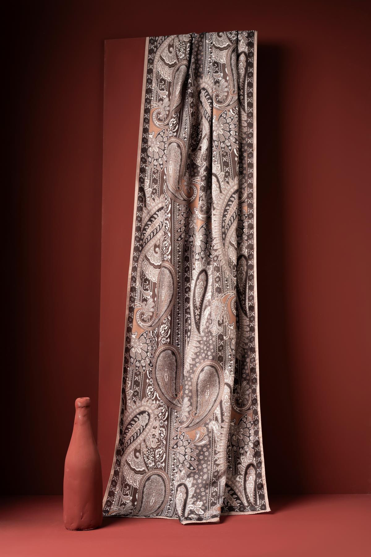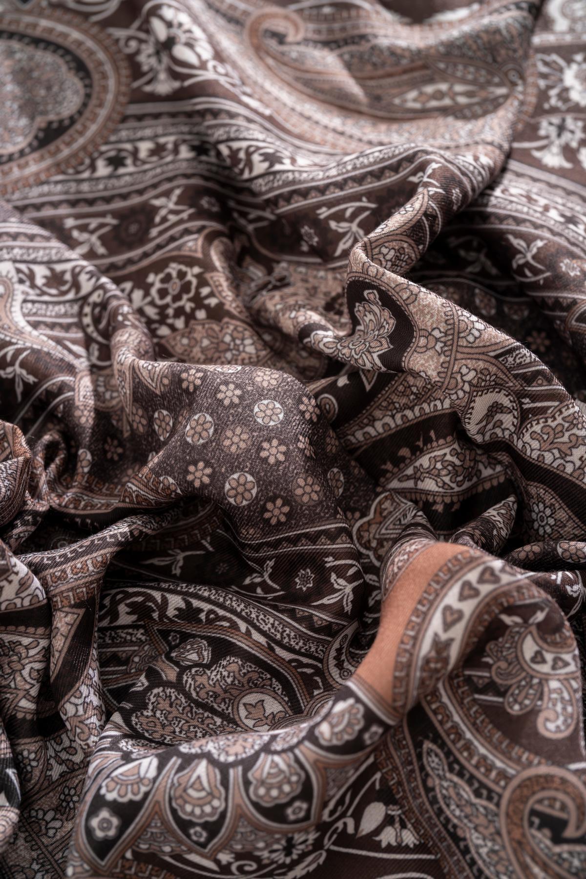 Kadın Etnik Desen Soft Şal Adessa KREM KAHVE