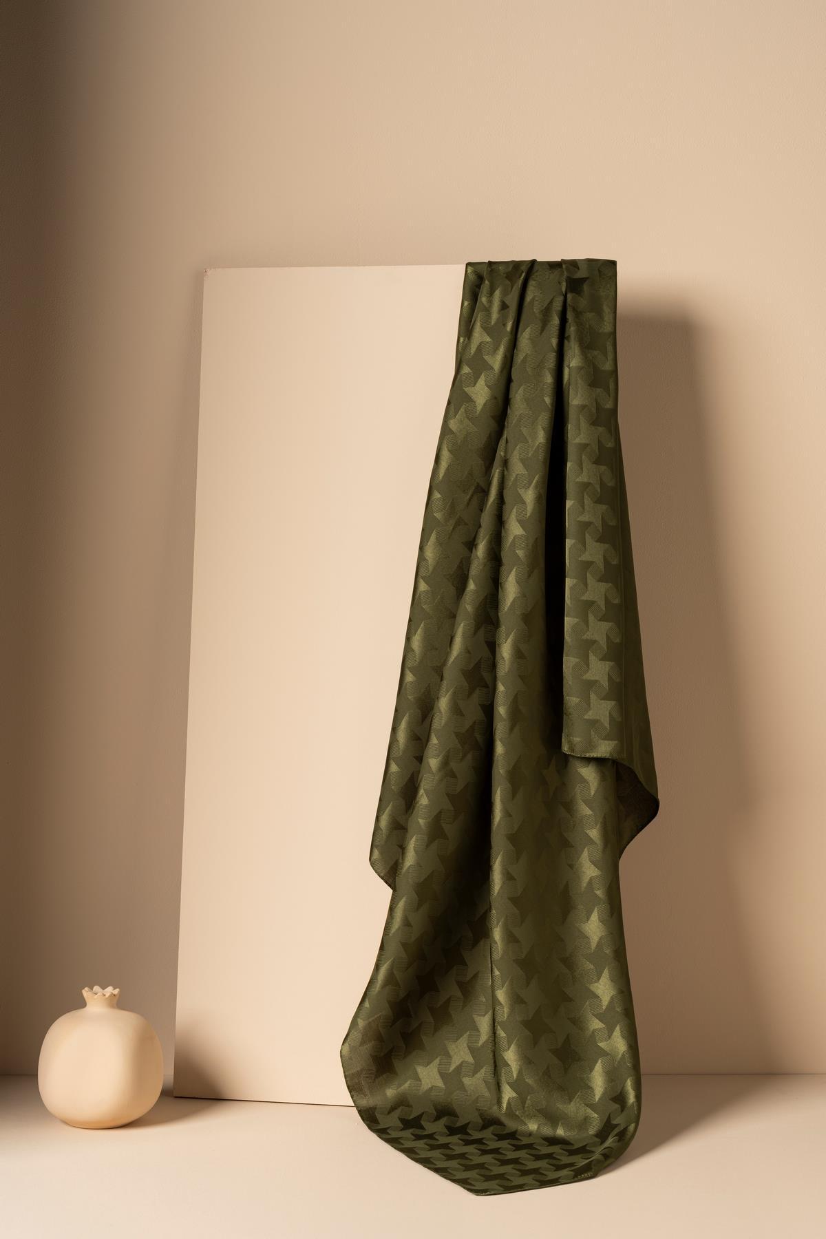 Kadın Jakarlı Yıldız Desenli Eşarp KOYU HAKİ